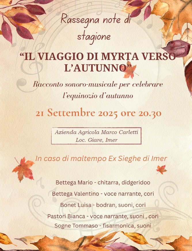 ore 20.30 (in caso di maltempo presso le Ex Sièghe di Imèr)
