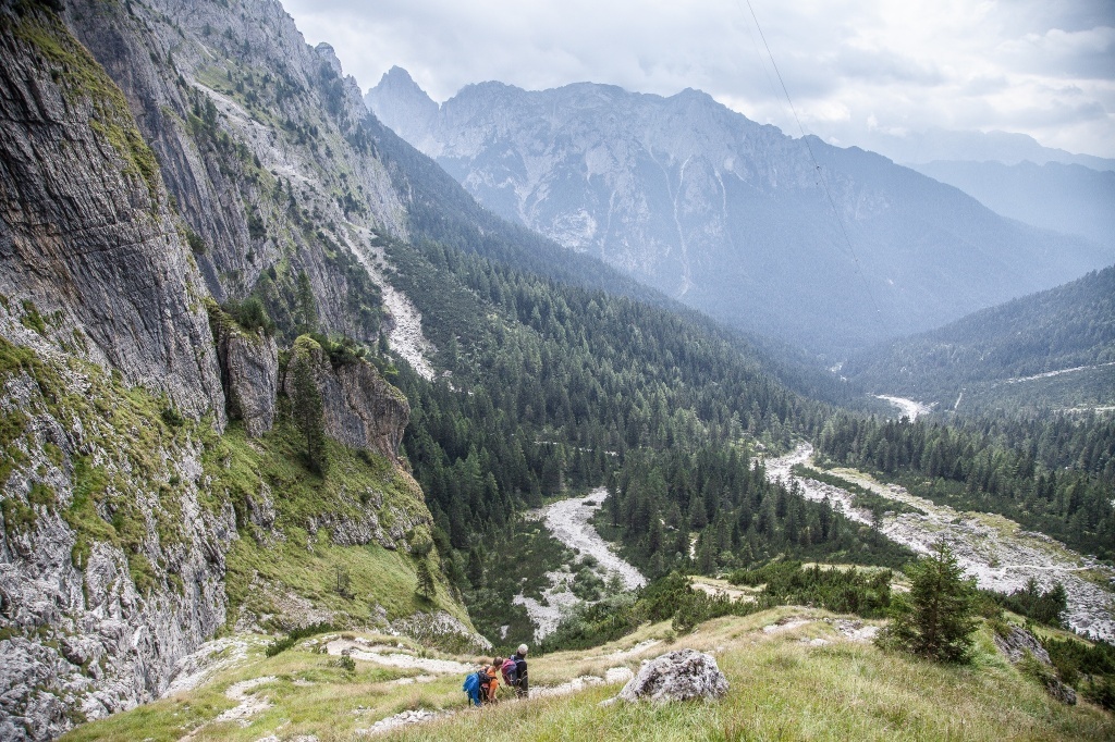 Von der Pradidali-Hütte entlang des Val Pradidali bis zu den grünen Wäldern des Val Canali und wieder hinauf zur Canali-Hütte