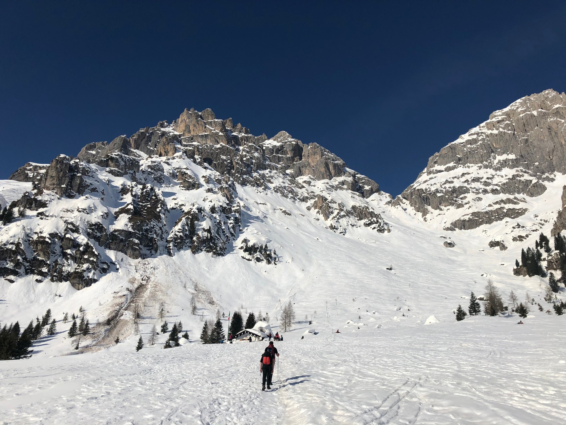 Die Wanderung zum Menegazzi-Hütte ist ein Ausflug, der unmittelbar hinter dem Cereda-Pass, in der reizenden Ortschaft Domadore, am Fuße der Pale di San Martino Orientali beginnt.