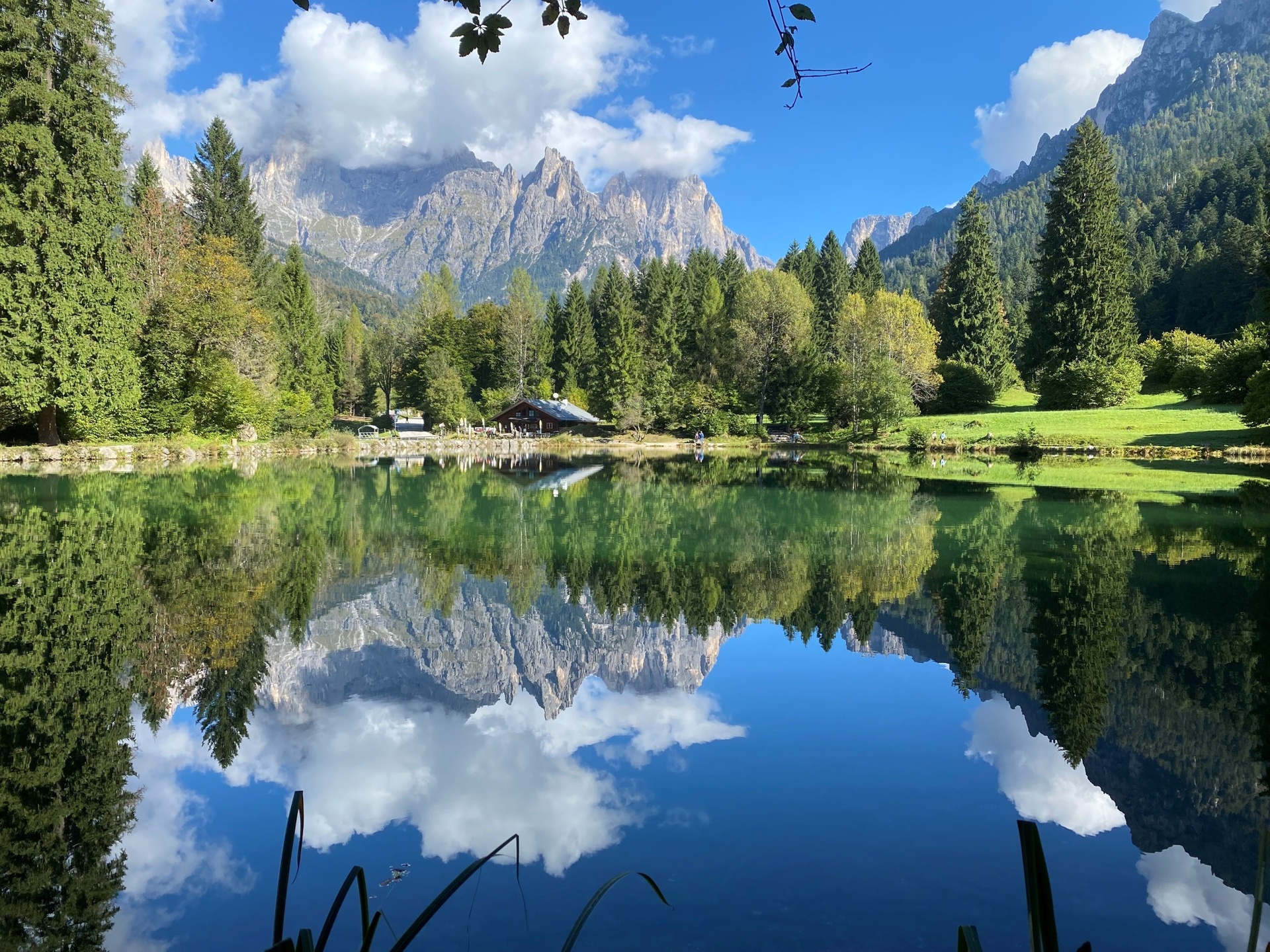 E-Bike-Ausflug, der von Fiera di Primiero ins Val Canali führt und dabei dem neuen Rad- und Fußweg folgt, der von der Madonna della Luce bis zum Fuße der Castel Pietra ansteigt und dann weiter zum Welsperg-Teich führt