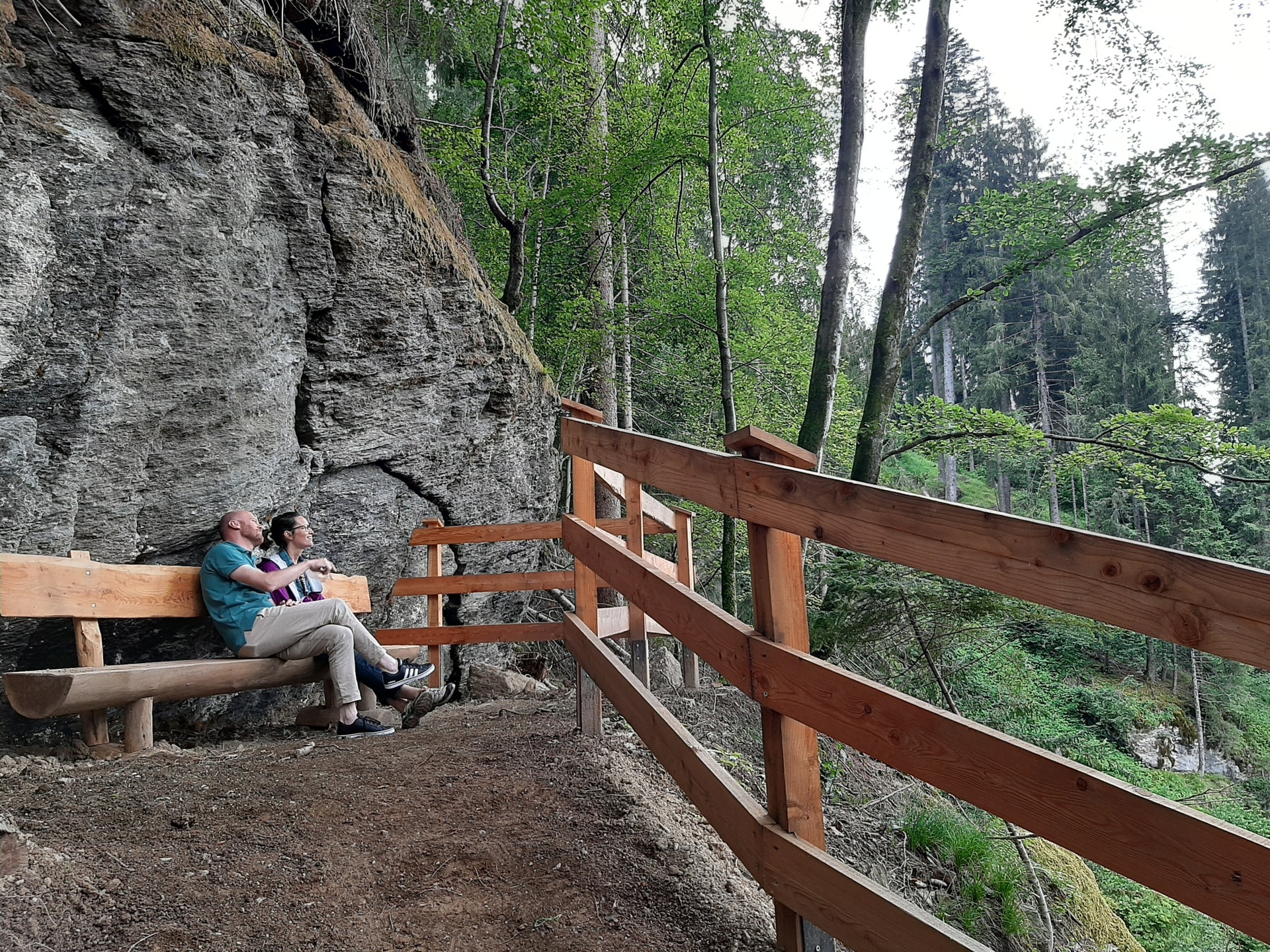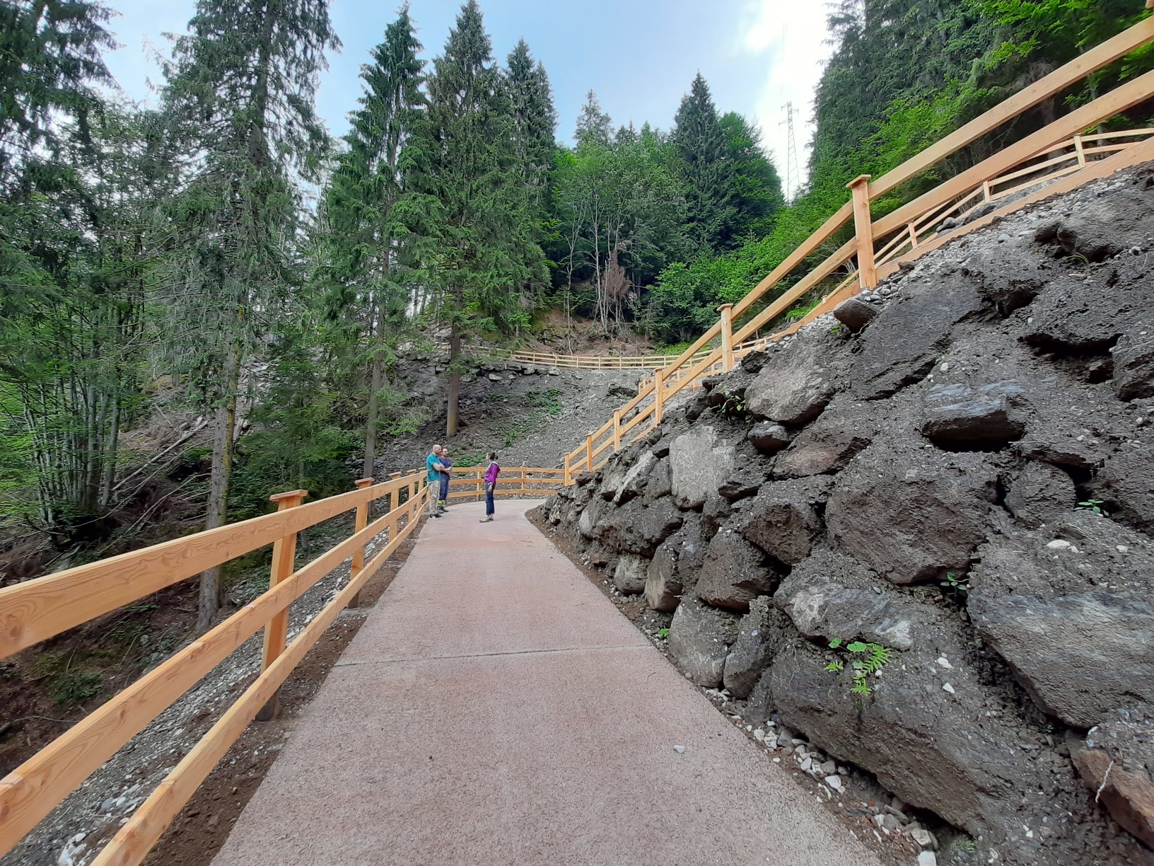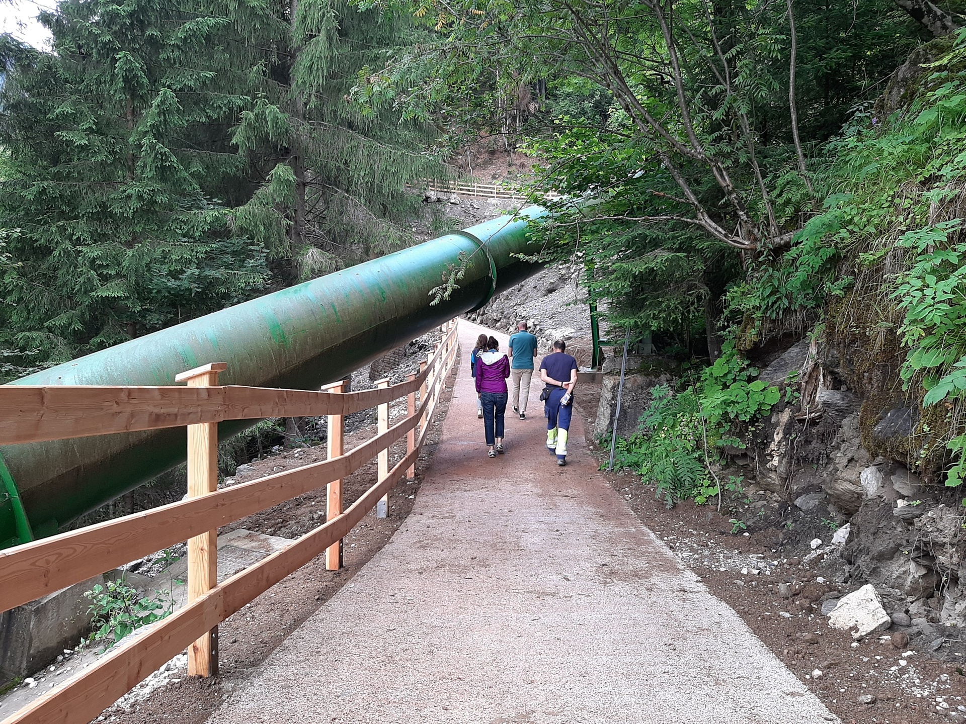 Der Rad- und Fußweg ermöglicht die Verbindung von San Martino di Castrozza mit dem Dorf Imer über eine spektakuläre Stahlseilbrücke von 58 Metern Länge und einer maximalen Höhe von 23 Metern über dem darunterliegenden Bach.