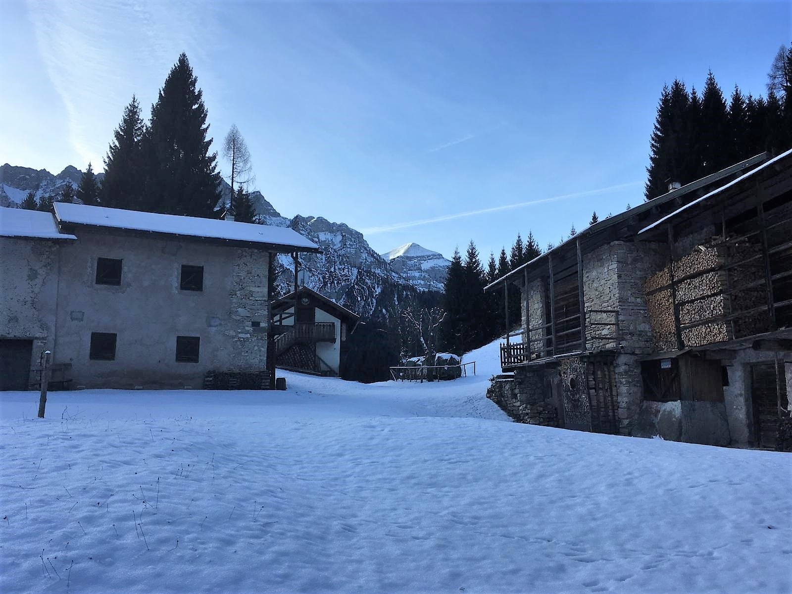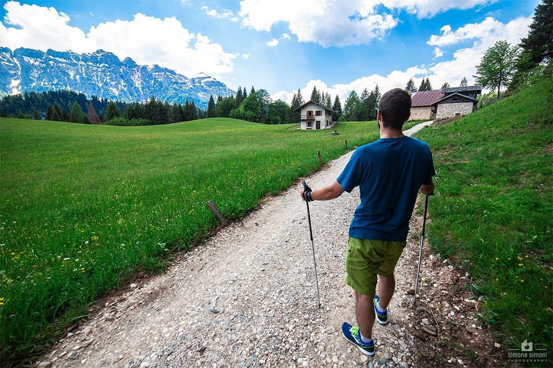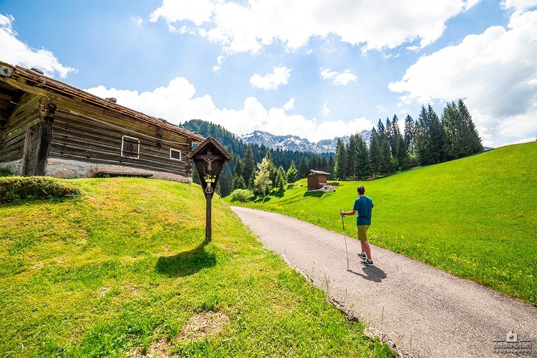 Die Rundtour beginnt in San Giovanni und verläuft im unteren Teil des Val Noana. Besonders beeindruckend ist der Punkt, an dem man den Rio Giasinozza über die neue Hängebrücke überquert, eine etwa 70 Meter lange Konstruktion, die 30 Meter über dem Bach verläuft. Vom Start ist der Weg bis zur Brücke vollständig bergab. Sobald man die Höfe von San Giovanni hinter sich lässt, wird die Landschaft recht wild und bietet für einen Moment die Gelegenheit, sich völlig abgeschieden zu fühlen. Man kann sagen, dass diese Rundtour besonders für Personen geeignet ist, die gerne in Einsamkeit abseits von überlaufenen Pfaden und Atmosphären wandern. Nach der Überquerung des Bachs zeigen sich die Weiden von Col, und ab diesem Punkt durchqueren die Wege eine Vielzahl verschiedener Weiden (z. B. Fonteghi, Val Piana).