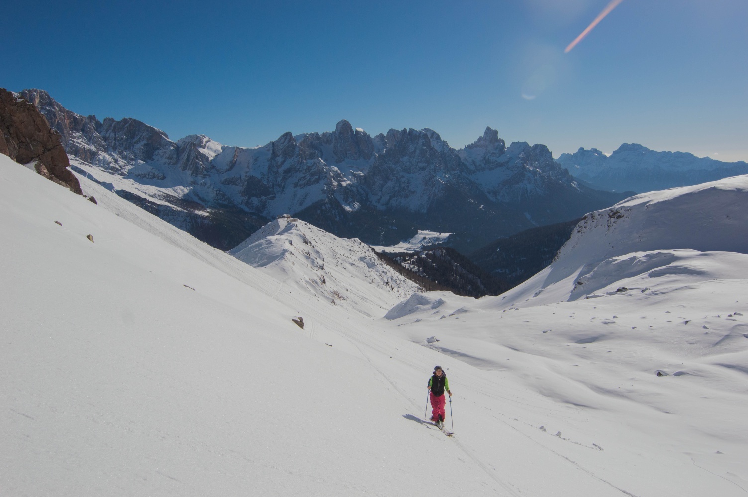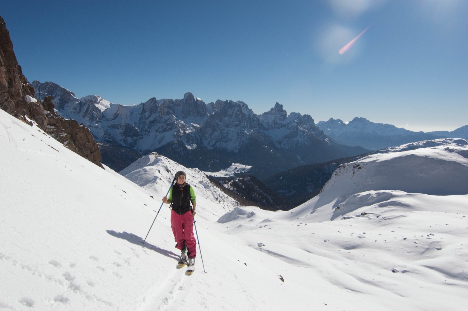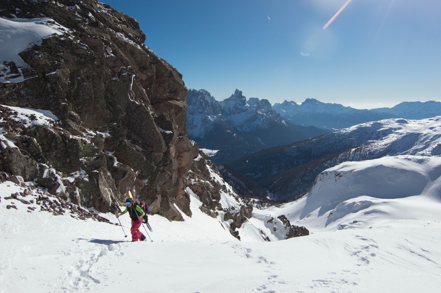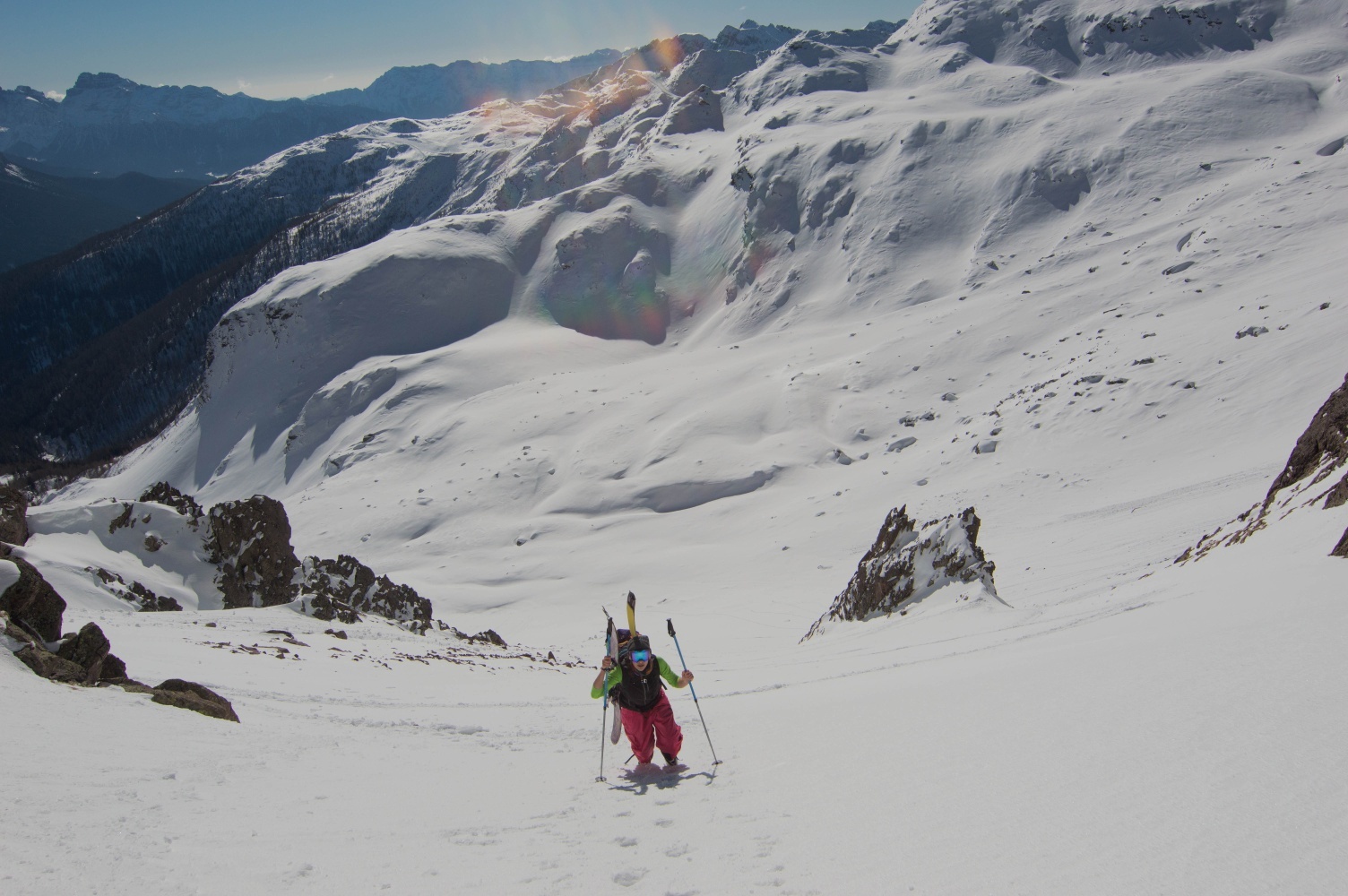 Diese wilde Route ist gekennzeichnet von einer wundervollen Abfahrt, die sich zuerst unter den offenen Abhängen auftut und dann entlang dem felsigen Canyon im Val di Ceremana.Eine gute Schneelage und sichere Bedingungen müssen gewährleistet sein, dann kann diese Route auch von weniger erfahrenen Skifahrern gemacht werden. Es ist ei