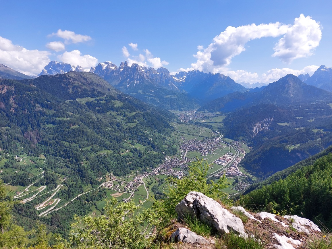 Die Route beginnt in Imer in der Ortschaft Giare, wo zahlreiche Parkplätze vorhanden sind. Zu Fuß geht es in die Ortschaft Casa Bianca, wo der Weg beginnt, der ins Val Noana führt und sich auf der rechten Talseite hält (Wegmarkierung 736). Der kurze, aber sehr panoramareiche Weg steigt etwa 1,2 km an, bevor er erneut die SP221 kreuzt. Nach einem kurzen Stück auf der Provinzstraße biegt man rechts ab auf den Weg (ebenfalls Markierung 736), der das Val Caora hinaufführt, bis er auf den Saumpfad trifft, der zur Hütte Vederna in der Ortschaft "Pian Grant" führt, einer bemerkenswerten Hochweide am Fuß des Monte Pavione. Von der Hütte Vederna geht es auf der Forststraße weiter bis zum Ort Morosna, wo sich die namensgebenden Stoli befinden, die vom italienischen Genie während des Ersten Weltkriegs gebaut wurden. Die in den Felsen gehauenen Tunnel sind beleuchtet und frei zugänglich. Die Aussicht ist spektakulär: Von dort aus sieht man sowohl das Primiero-Tal als auch einen großen Teil des Vanoi-Tals. Für den Rückweg wandert man denselben Weg zurück bis nach Imer.