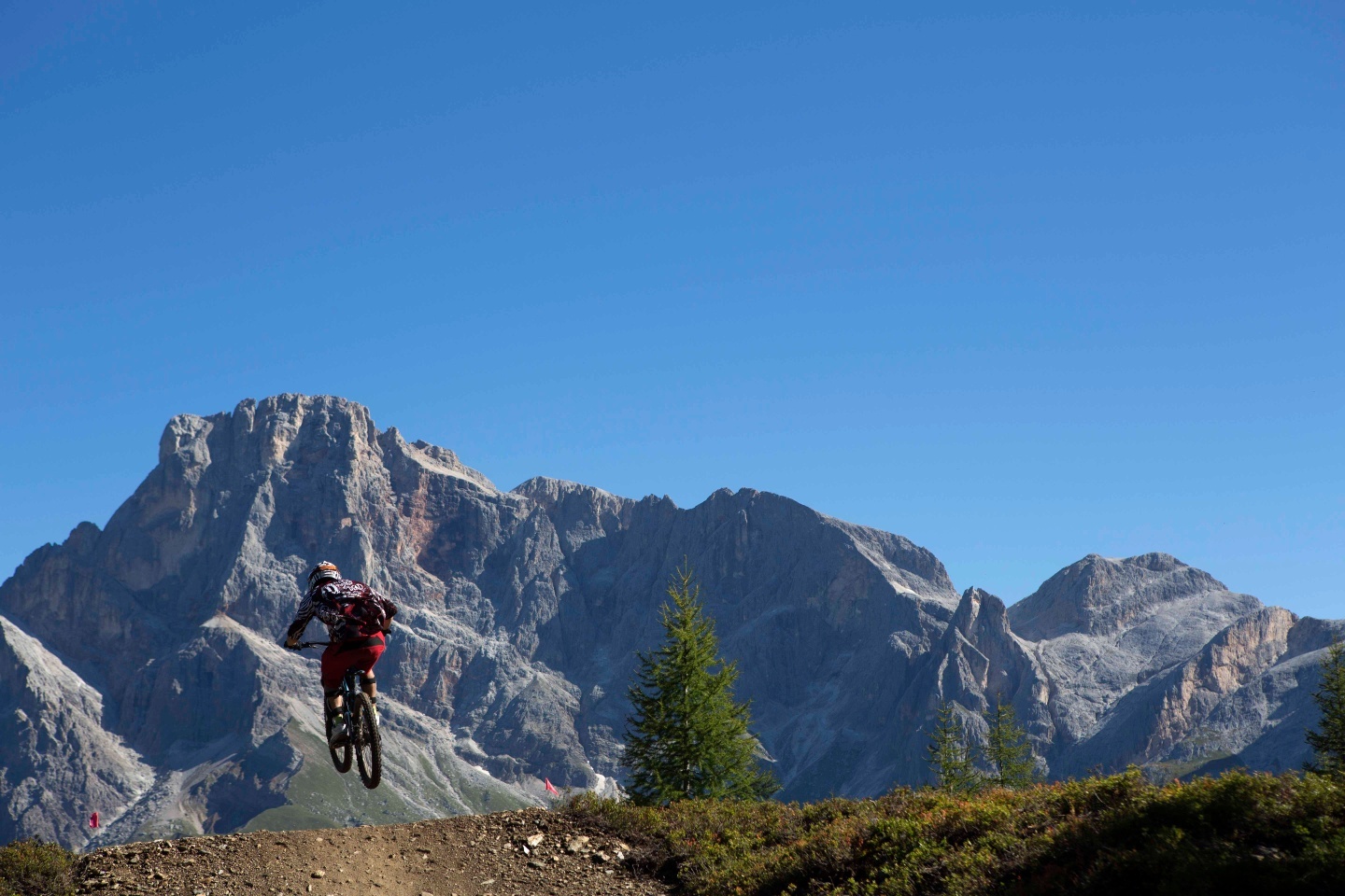Steiler und schwieriger als die Variante Tognola DH Tre. Diese neue Fahrradstrecke geht bergabwärts unter der Gondelbahn Tognola durch, in Richtung der Mauern der Skipiste Tognola Uno bis nach Malga Crel.