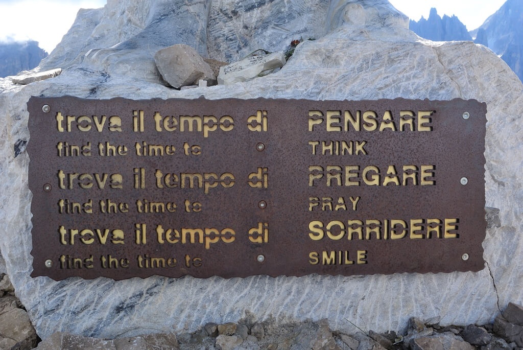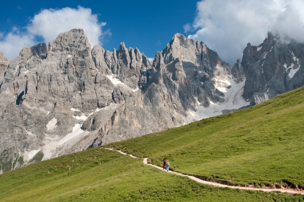 Das Trekking startet am Passo Rolle. Vom Pass geht es in Richtung Baita Segantini hinauf (es ist möglich, entweder die bequeme Schotterstraße oder den angrenzenden, etwas steileren, aber direkteren Pfad zu nehmen). Einmal bei der Baita Segantini angekommen, folgt man den Hinweisen zum "Trekking del Cristo Pensante", der sowohl im Uhrzeigersinn als auch gegen den Uhrzeigersinn gegangen werden kann. Der Weg zur Statue des Cristo Pensante auf dem Gipfel des Monte Castellazzo ist körperlich nicht besonders anspruchsvoll und erlaubt das Durchqueren eines Gebiets von historisch-kulturellem Interesse mit Stollen und Wegen aus dem Ersten Weltkrieg. Dennoch ist beim Überqueren der exponierteren Stellen und auf dem Gipfel Vorsicht geboten, da der Platz vor allem in den besonders frequentierten Monaten (Juli-August) begrenzt ist. Vom Gipfel des Monte Castellazzo genießt man einen außergewöhnlichen Blick über die gesamte Nordseite der Pale di San Martino, vom Mulaz bis zum Cimon della Pala.