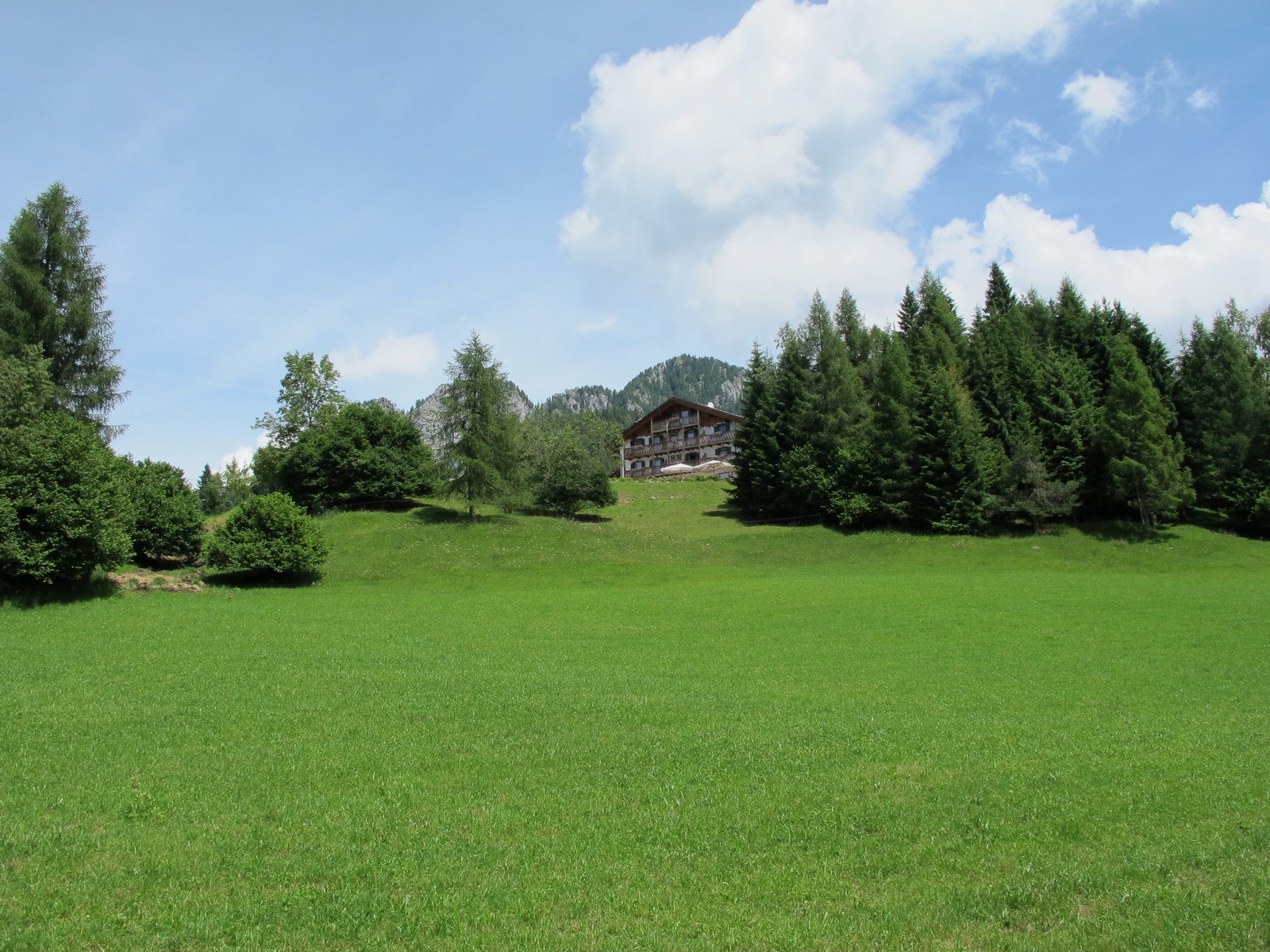 Die Schutzhütte Caltena liegt an der Westgrenze der Cimonega-Gruppe auf sonnigem, stillem Wiesenland mit weiter Aussicht auf die Vette Feltrine und die Dolomiten mit den Pale di San Martino.