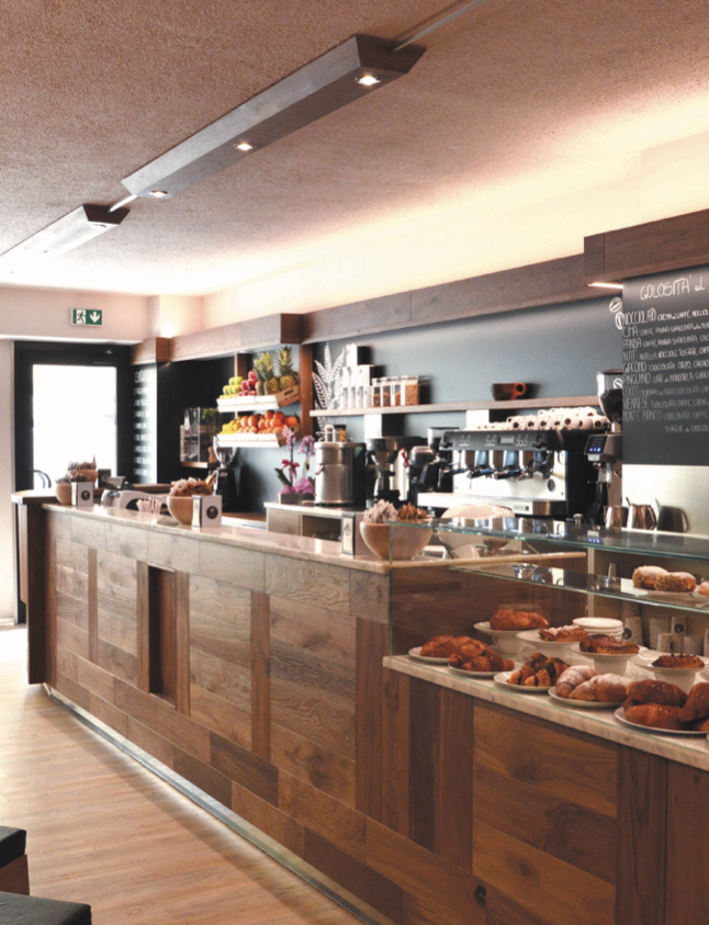 Die Cafeteria empfängt Sie vor den Toren des Zentrums von Fiera di Primiero: ein Treffpunkt, an dem sich morgens der intensive Duft von Kaffee mit dem süßen Duft von Croissants verbindet. Unsere 100 % Arabica-Mischung stammt aus einer kleinen handwerklichen Röstung, um jeden Tag hochwertigen Kaffee anbieten zu können. Wir backen jeden Morgen mehr als 30 Arten von Croissants: klassisch, Vollkorn und vegan, die von frischen Zentrifugen mit Obst und Gemüse begleitet werden können, die streng saisonal sind. Eine große Auswahl an zarten und sehr duftenden Blatttees und Snacks mit Joghurt, begleitet von frischem Obst oder Müsli.