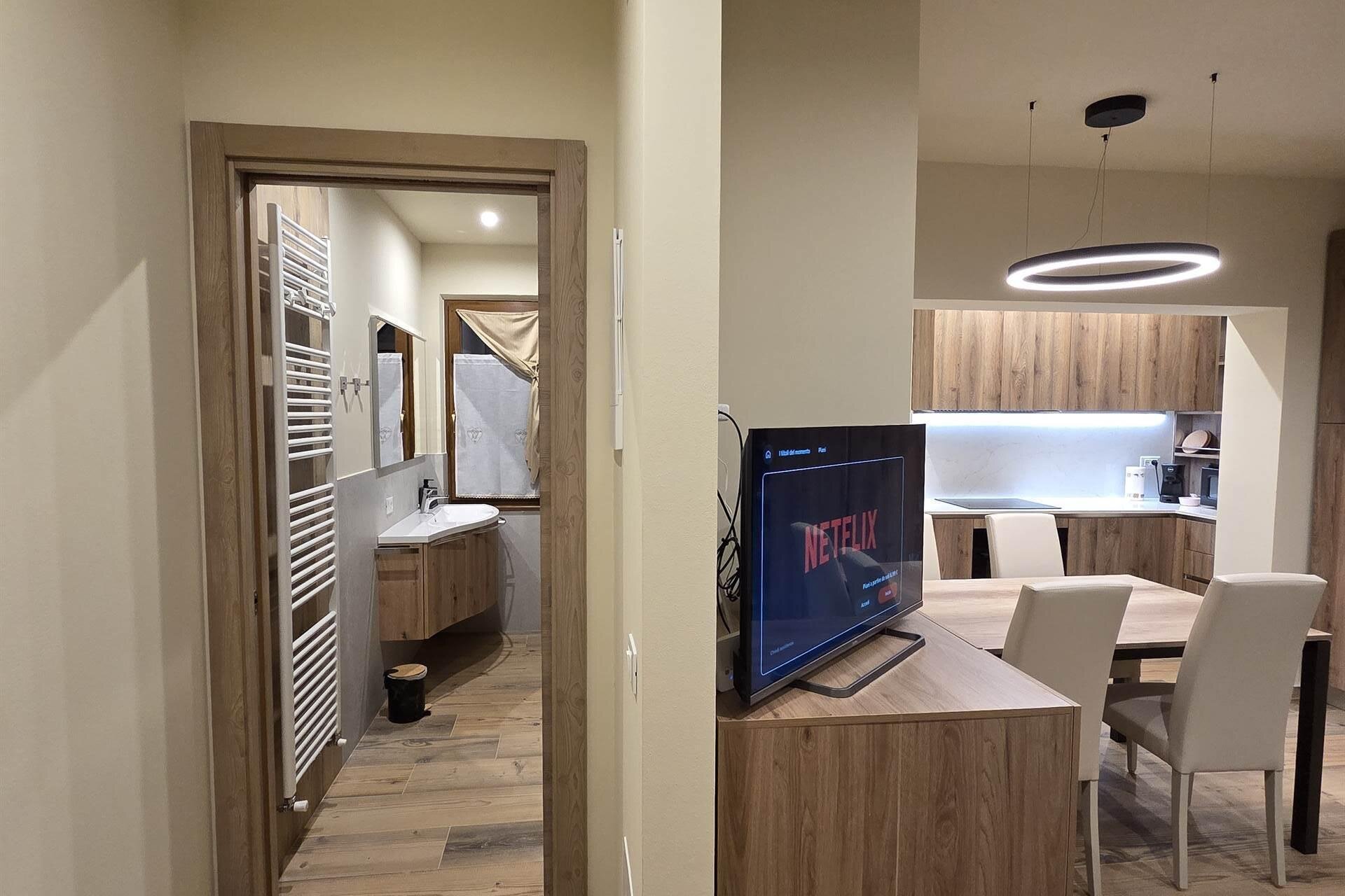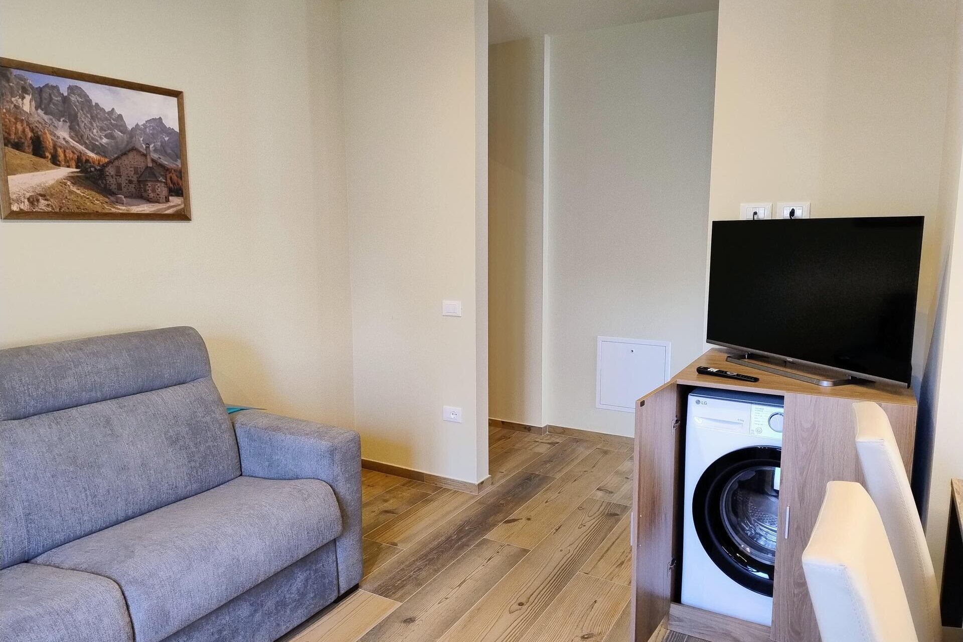 Gemütliche Wohnung in Transacqua, in ruhiger Lage und nur wenige Minuten vom Zentrum von Fiera di Primiero entfernt. Schlafzimmer mit Doppelbett, Wohnzimmer mit Smart-TV + Netflix und Schlafsofa, moderne Küche und Badezimmer mit großer Dusche. Privater Parkplatz und Skiraum. Perfekt für einen Winteraufenthalt zwischen schneebedeckten Dolomiten, Schneeschuhwanderungen, Weihnachtsmärkten und alpiner Atmosphäre. Die Pisten von San Martino di Castrozza und Passo Rolle sind in 20 Minuten erreichbar.
