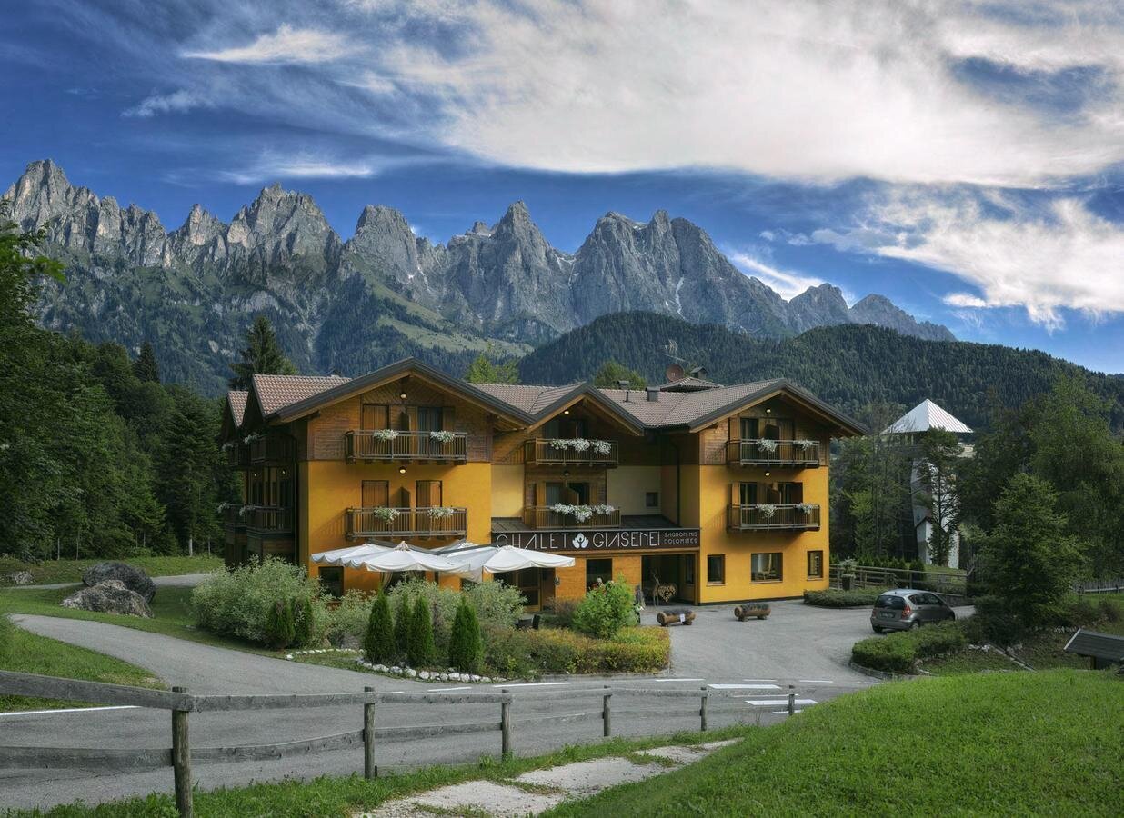 Auf den smaragdgrünen Wiesen am Fuße der Dolomiten gelegen, zwischen den Pale di San Martino und dem Naturpark Belluno Dolomiten, ist das Chalet Giasenei die Zuflucht, wo jeder Urlaub ein Erlebnis ist, das mit einer Wiedergeburt endet. Ein verzauberter Ort, die Küche mit typischen Vorschlägen und Produkten der Umgebung und eine persönliche Entspannung von den Details, die die Struktur ihren Gästen bietet. Hier wird das Bad in dem phyto-gereinigten Biolago gemacht und alles ist in Harmonie mit dem Territorium gestaltet. Die Losungen regenerieren sich, laden auf und finden sich wieder. In der Intimität der Zimmer im alpenländischen Stil, die mit allem Komfort ausgestattet sind, mit Parkettböden, organischen Toilettenartikeln und vom Kunden gewählten Kissen. Für eine exklusive Wellness gibt es ein eigenes Spa mit Sauna, Whirlpool und Heubad.