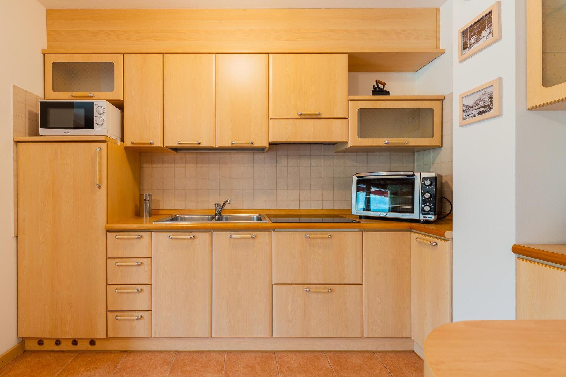 Die geräumige und helle Wohnung wird Sie sofort wie zu Hause fühlen lassen. Sie befindet sich im Residence Orsingher, im Zentrum von Fiera di Primiero in sonniger und ruhiger Lage, nur wenige Meter von der Bushaltestelle, dem kürzlich renovierten Schwimmbad und allen Dienstleistungen entfernt. Das massive Holzmobiliar strahlt Wärme, Komfort und Wohlbefinden aus. Sie verfügt über eine Küche, ein Wohnzimmer, 2 Schlafzimmer, ein Badezimmer mit Dusche, alles sauber und gut gepflegt. Vom Balkon aus hat man einen wunderbaren Blick auf die Pale di S. Martino. Eingerichtet mit Aufzug und überdachtem Parkplatz. Für Leseratten gibt es einen kleinen Garten. Für die Kinder gibt es in 100 Metern einen tollen Spielplatz.