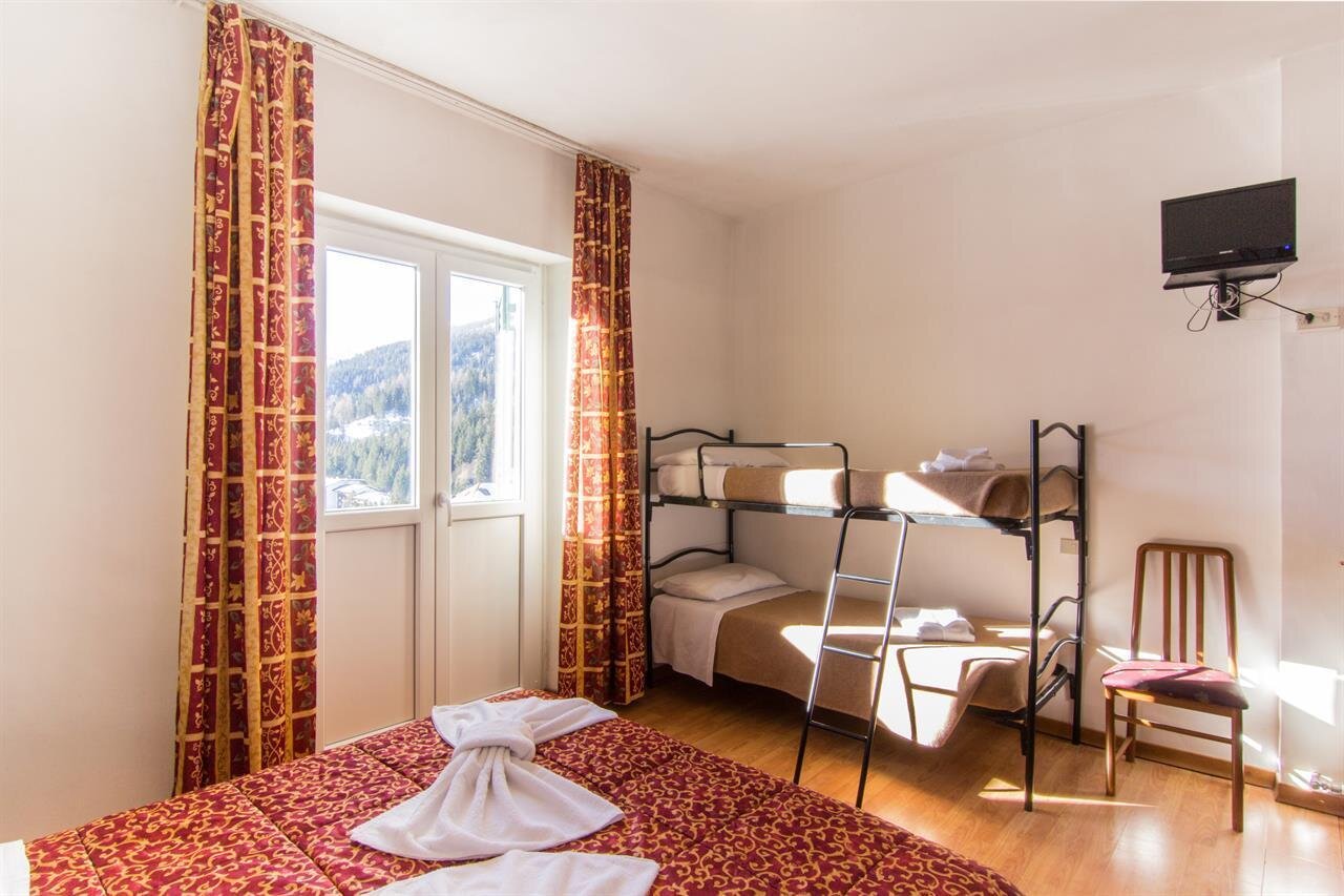 Das Excelsior Hotel Cimone befindet sich im Zentrum von San Martino Di Castrozza, am Hauptplatz. Das Hotel verfügt über 80 Zimmer mit Bad, die mit Balkon, Telefon, TV und Whirlpool ausgestattet sind. Das Hotel liegt in der Nähe aller Freizeitaktivitäten in San Martino di Castrozza. Ausstattungen: Halle, TV-Raum, Aufenthaltsraum, Bar, Restaurant, Billardraum, Animationsraum für Kinder, Diskothek, Skiraum und Skischuhlager, natürliche Sonnenterrasse und privater Parkplatz. Es befindet sich 150 Meter von der Colverde-Seilbahn und 1500 Meter von der Tognola-Gondel entfernt, leicht erreichbar mit dem Skibus der Region, der direkt vor dem Hotel hält. Direkt von den Besitzern geführt, bietet es eine Küche reich an typischen und nationalen Gerichten, mit Mittag- und Abendessen, die am Tisch serviert werden, mit Auswahl zwischen drei ersten und drei zweiten Gängen, Buffet mit Beilagen und Salaten beim Abendessen, Wein in Karaffen inbegriffen zu den Mahlzeiten. Außerdem steht den Gästen ein qualifiziertes Animationsteam zur Verfügung, um die Abende fröhlich zu verbringen. Die Zimmer sind in Standard und Cheap unterteilt. STANDARD: Doppel- und Dreibettzimmer, die kürzlich renoviert wurden, sind einfach eingerichtet und verfügen über Telefon, Farb-TV, Badezimmer und größtenteils über einen Balkon mit Bergblick. CHEAP: Vierbettzimmer sind wie die Standardzimmer eingerichtet, wurden jedoch nicht renoviert.