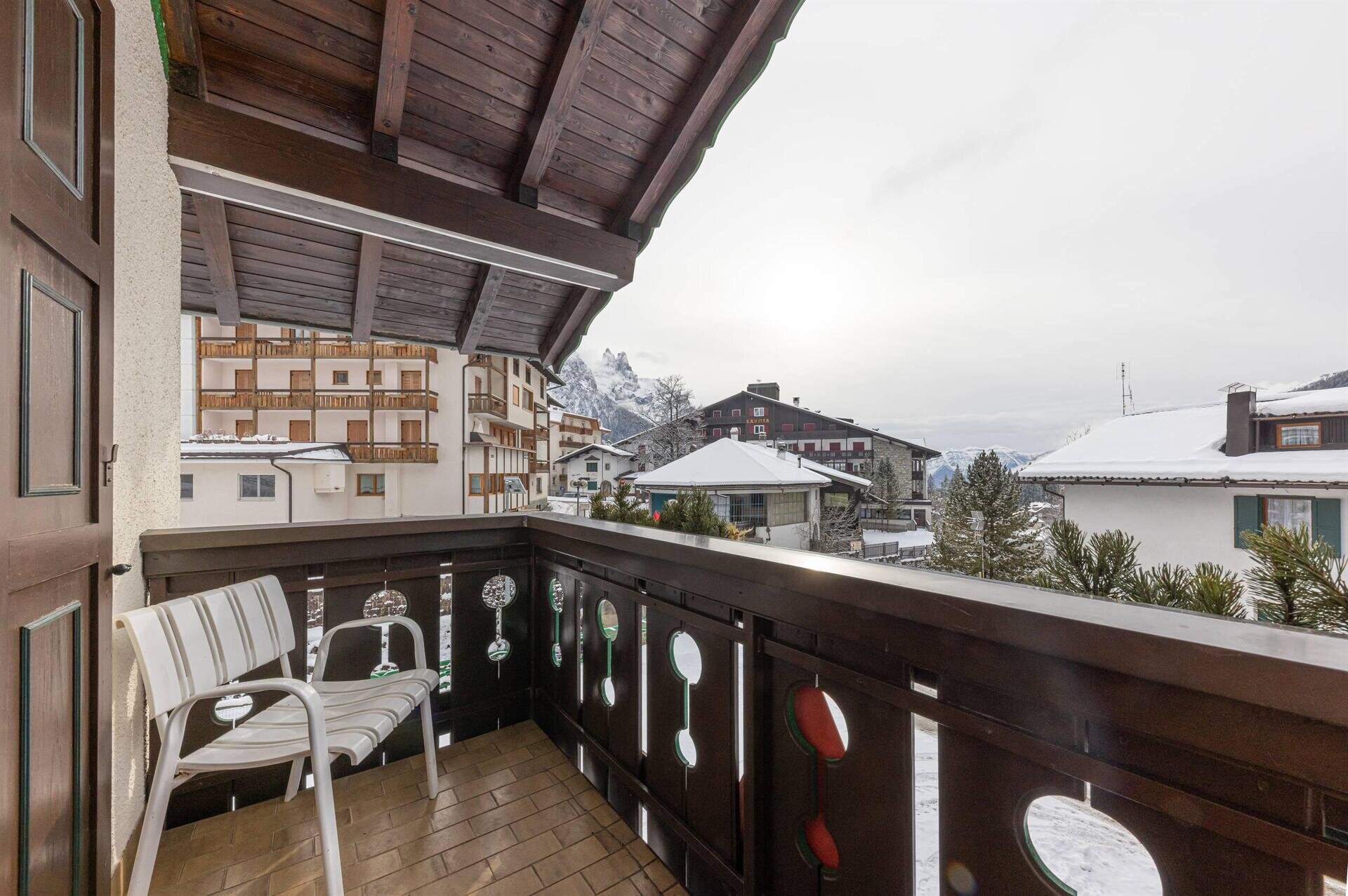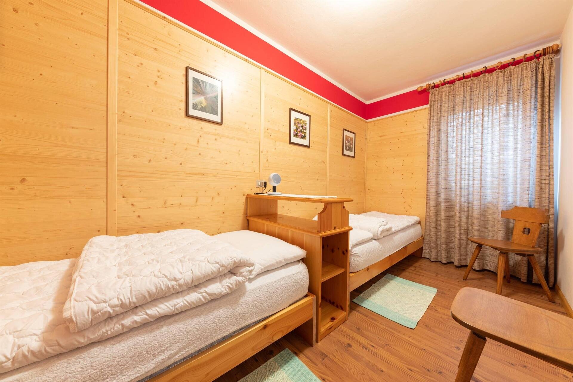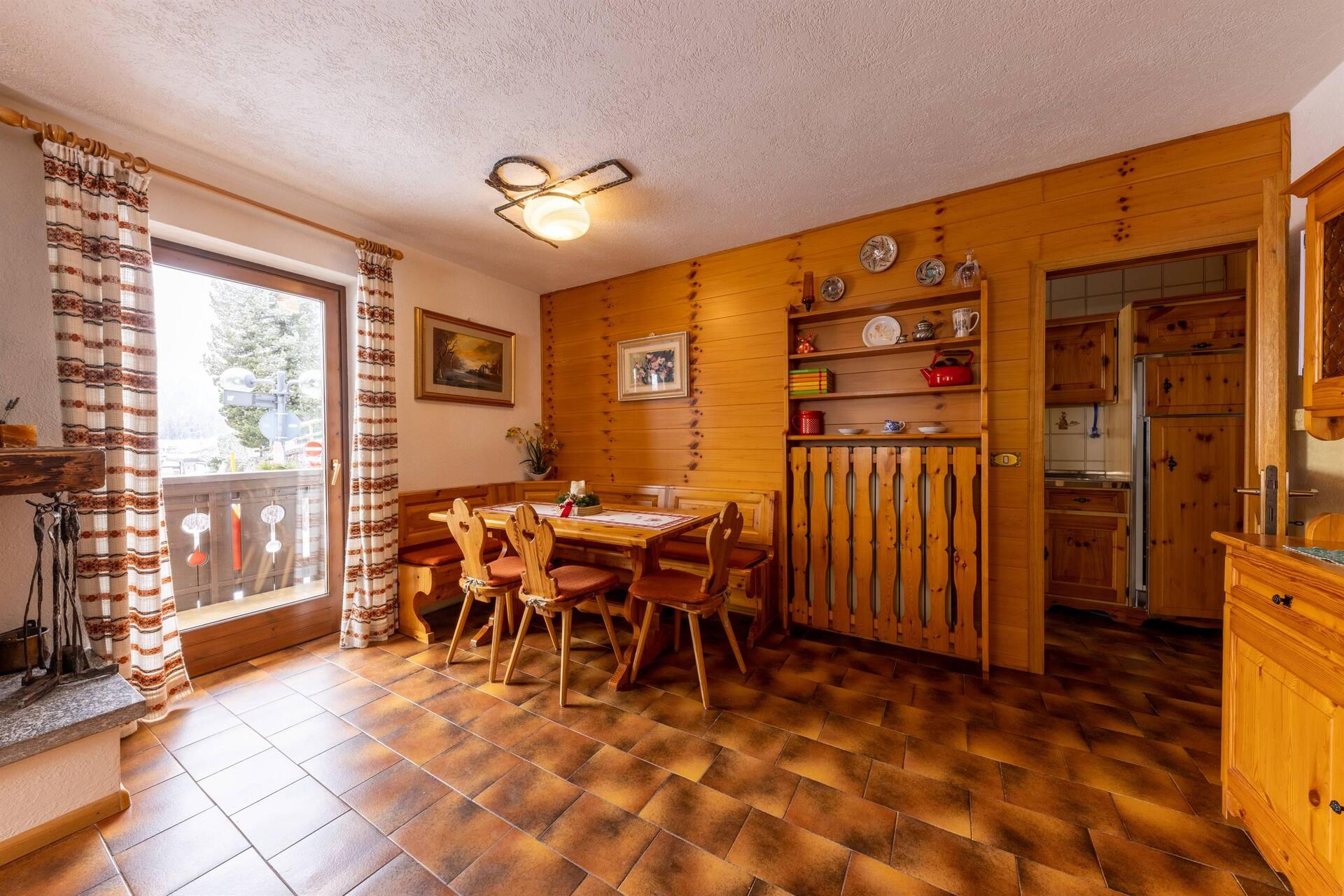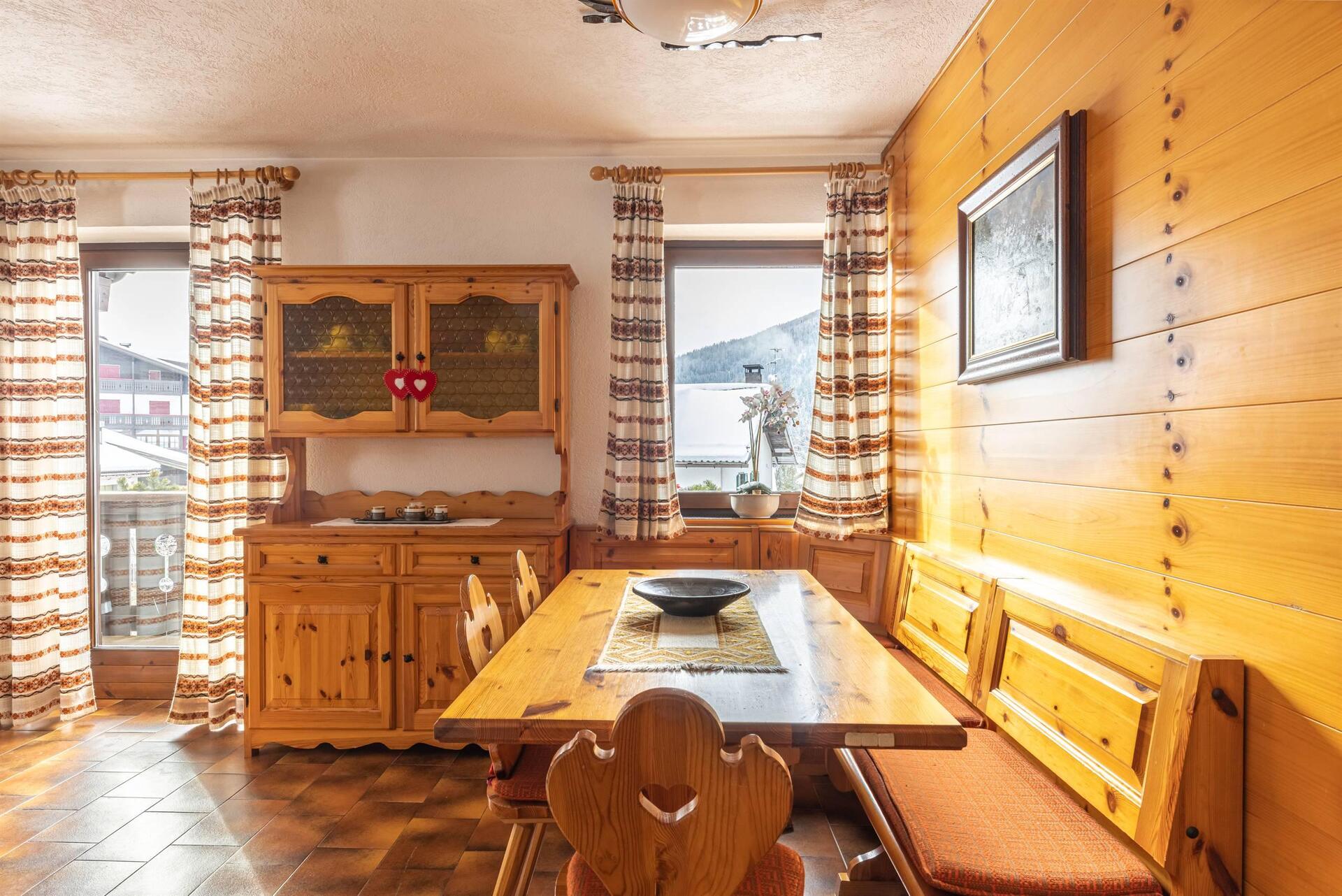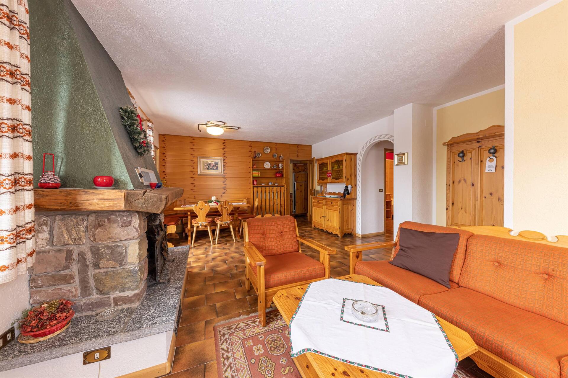 Apartment mit separatem Eingang, privatem Außenparkplatz und Garage; zwei Schlafzimmer (eins mit Doppelbett und eines mit zwei Einzelbetten), Wohnzimmer mit Essbereich und Küche. Wenn Sie sich für Villa Giuliana entscheiden, haben Sie auch Zugang zu den exklusiven Dienstleistungen des Hotels: dem Wellnessbereich und dem Mini-Pool; das WiFi in den öffentlichen Bereichen, den kostenlosen Ski-Bus im Winter und den Miniclub.
