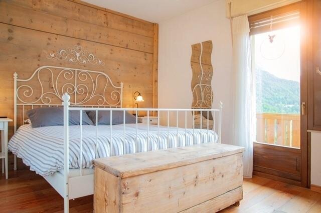 Sie verfügt über einen Wohnbereich mit Küchenzeile und Wohnzimmer, 2 Schlafzimmer für insgesamt 4 Betten und 1 Badezimmer mit Dusche. Außerdem hat sie zwei große Balkone an den beiden Seiten des Hauses. Die Einrichtung ist im Stil eines Berghauses mit Boden, Wänden und Möbeln aus Holz gestaltet.
