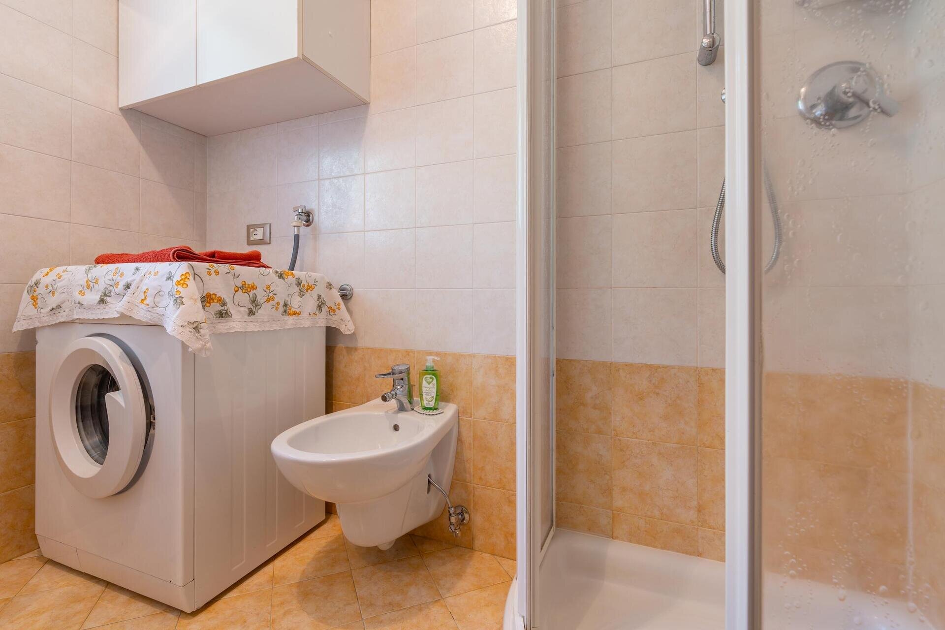 Located on the ground floor the apartment of about 60 sqm consists of two bedrooms, with wooden staves and duvets, bath with shower, washing machine and dryer, lounge, lounge with TV, fully equipped kitchen, with tableware, food processor, oven and microwave. In the small closet you will find everything you need for cleaning, including electric broom.