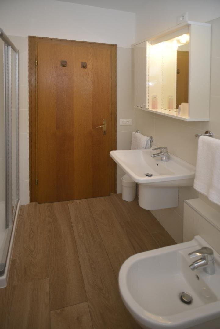 The apartments are furnished in a typical style and are located in a central, quiet, and sunny area just steps away from the historic center of Fiera di Primiero, shops, and all services (immediate proximity to the bus/skibus stop, sports area with swimming pool and tennis courts, playground, cinema, etc.).