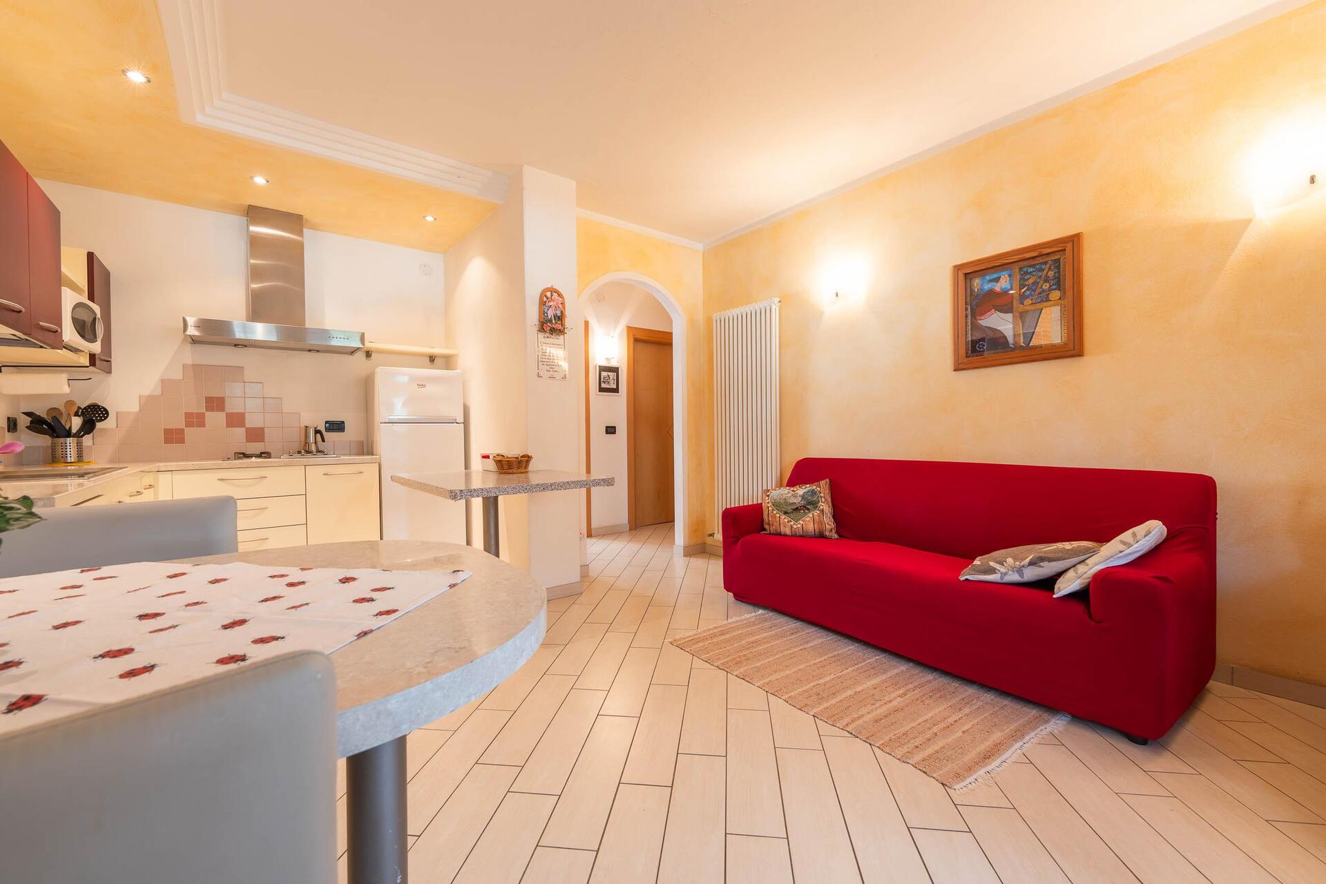 It consists of a living area with a kitchen, equipped with a dishwasher, microwave, fridge, TV, and free Wi-Fi.