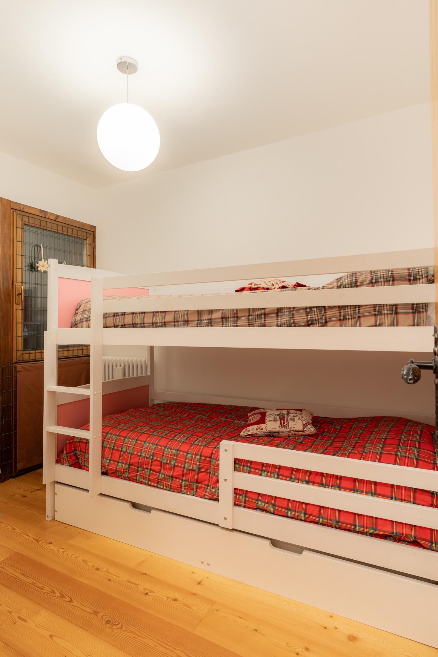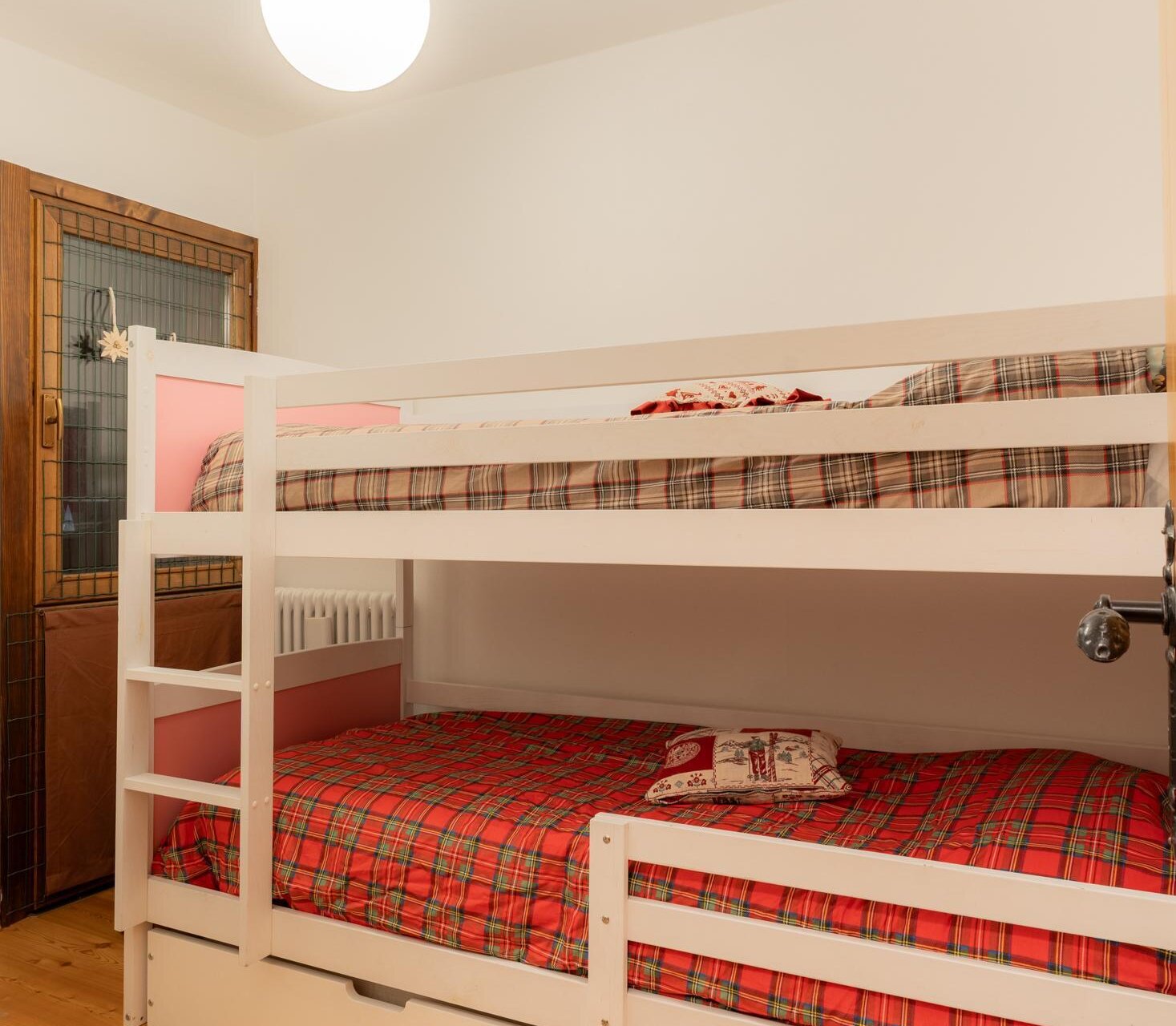 Apartment in the central area of San Martino di Castrozza near the pedestrian zone, in front of the skibus stop. Composed of a living room, kitchenette, one double bedroom, one bedroom with bunk beds, and a sofa bed in the living room.