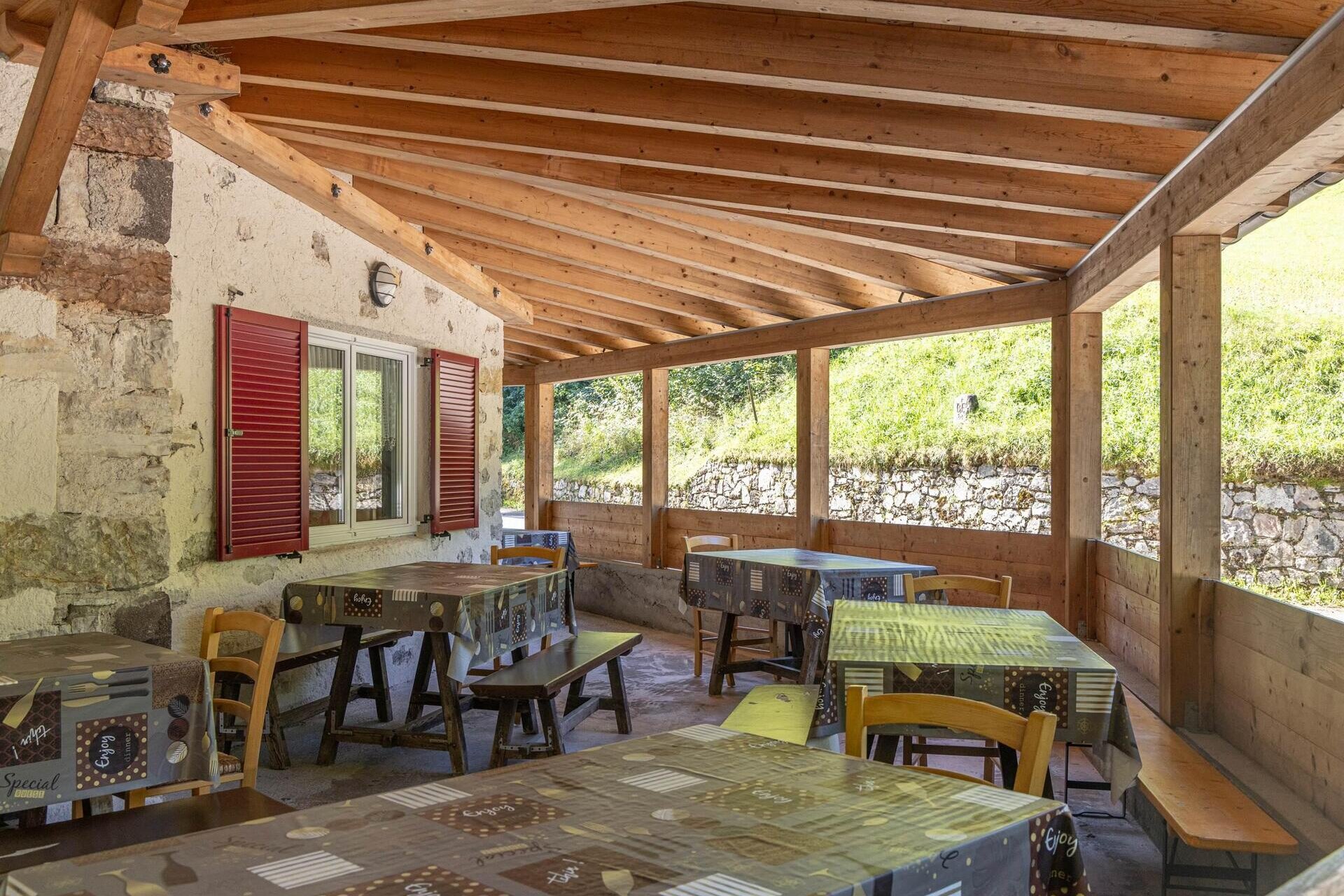 Where the narrow and wild Noana Valley finally opens, here is the Refuge Fonteghi, in an area between the Belluno Dolomites Park (to the south) and the Paneveggio-Pale di San Martino Natural Park (to the north). Here, people come (also) to do canyoning in the surprising gorges carved by the waters of the Rio Neva. The Refuge was built in the late 1950s when the dam that created the artificial lake was constructed and has been recently renovated and equipped with a large veranda. In the kitchen, there are typical dishes, ancient recipes, and zero-kilometer ingredients, such as vegetables grown in the garden. Attention to well-being and the environment is also found in the rooms, where the heating is in the walls, made from eco-friendly materials.
