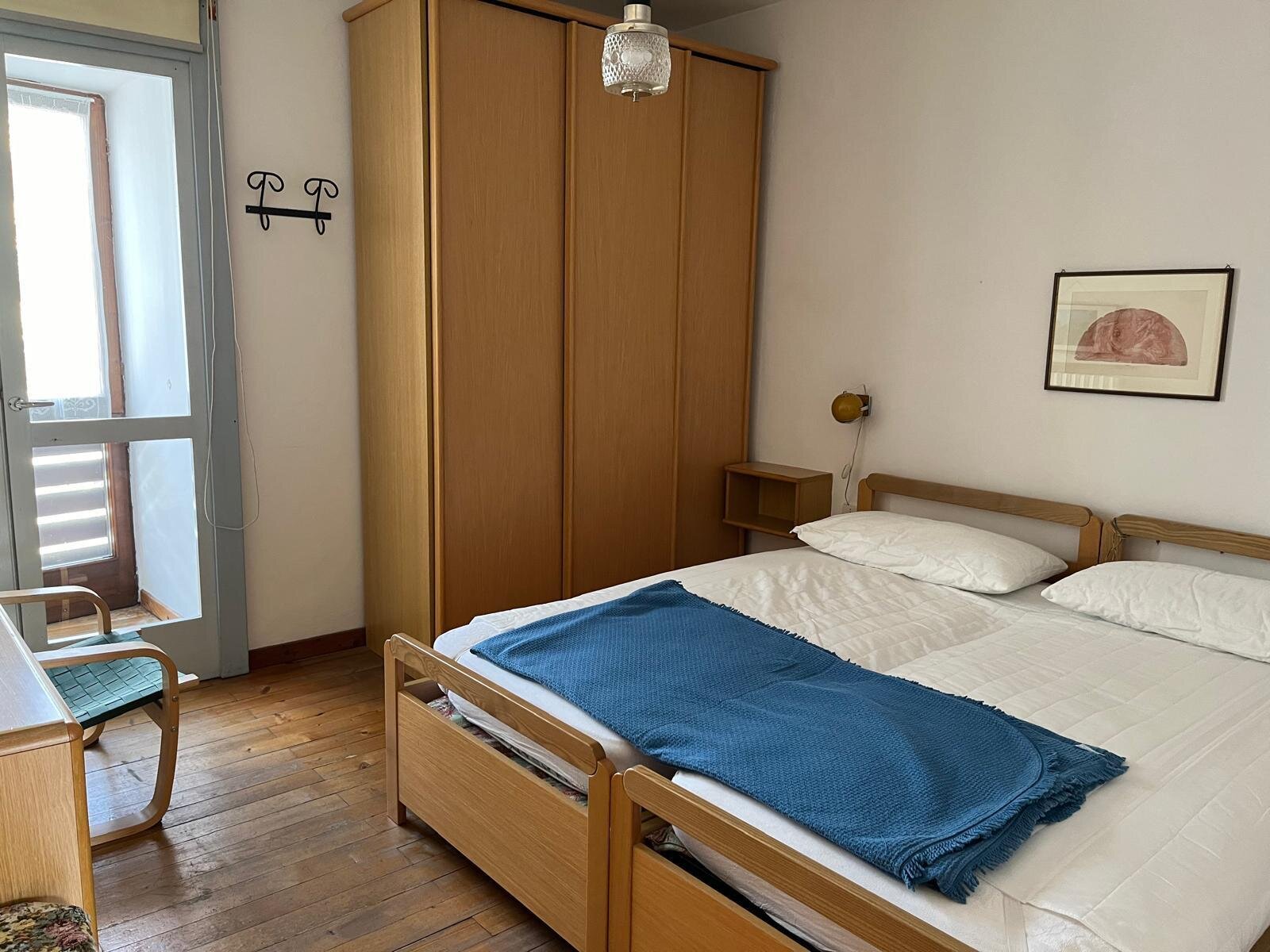 The apartment is located on the second floor with an elevator, has 4 beds (2 singles and 1 double), bathroom with shower, washing machine, TV, no internet or Netflix, gas stove, microwave, no dishwasher, 2 balconies. No pets. Outdoor parking nearby.