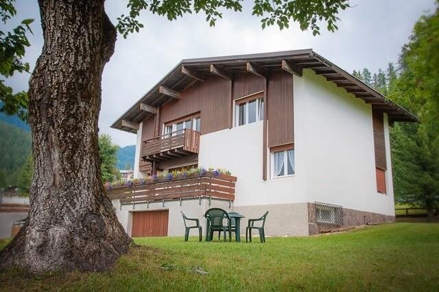 Villa "al Maso" is located within the main hotel area of San Martino and near the Colverde-Rosetta ski lifts. The apartment on the first floor consists of two rooms, one double and one twin, a bathroom, a living room with large windows overlooking the balcony, and a spacious kitchen. The other apartment, on the raised ground floor, is similar to the one described above. In the basement, there are technical services, a storage room for sports equipment, and a laundry room. The villa is surrounded by a large garden with parking within the property.