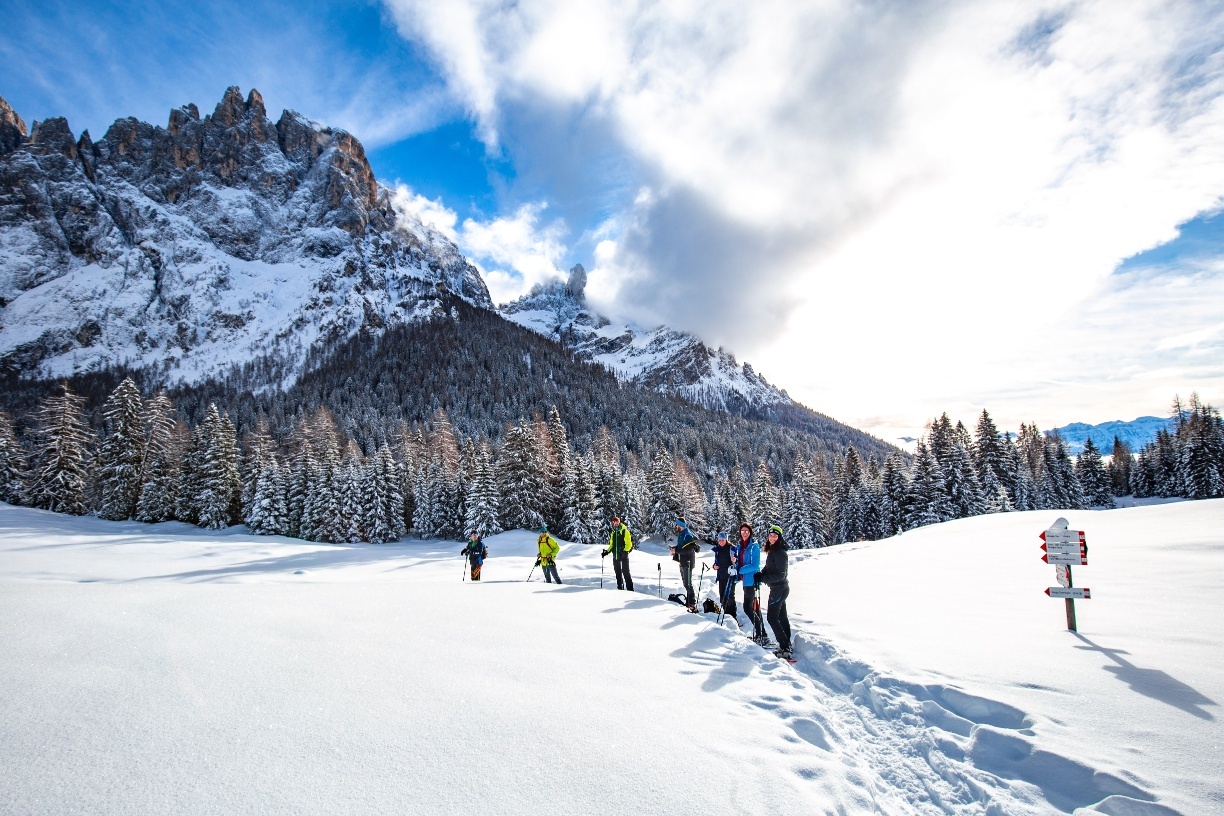 This circular route, highly recommended during the winter season with snowshoes for its beauty and ease of execution even in the presence of snow, is one of the most beautiful itineraries to do in half a day starting from the village of San Martino di Castrozza.