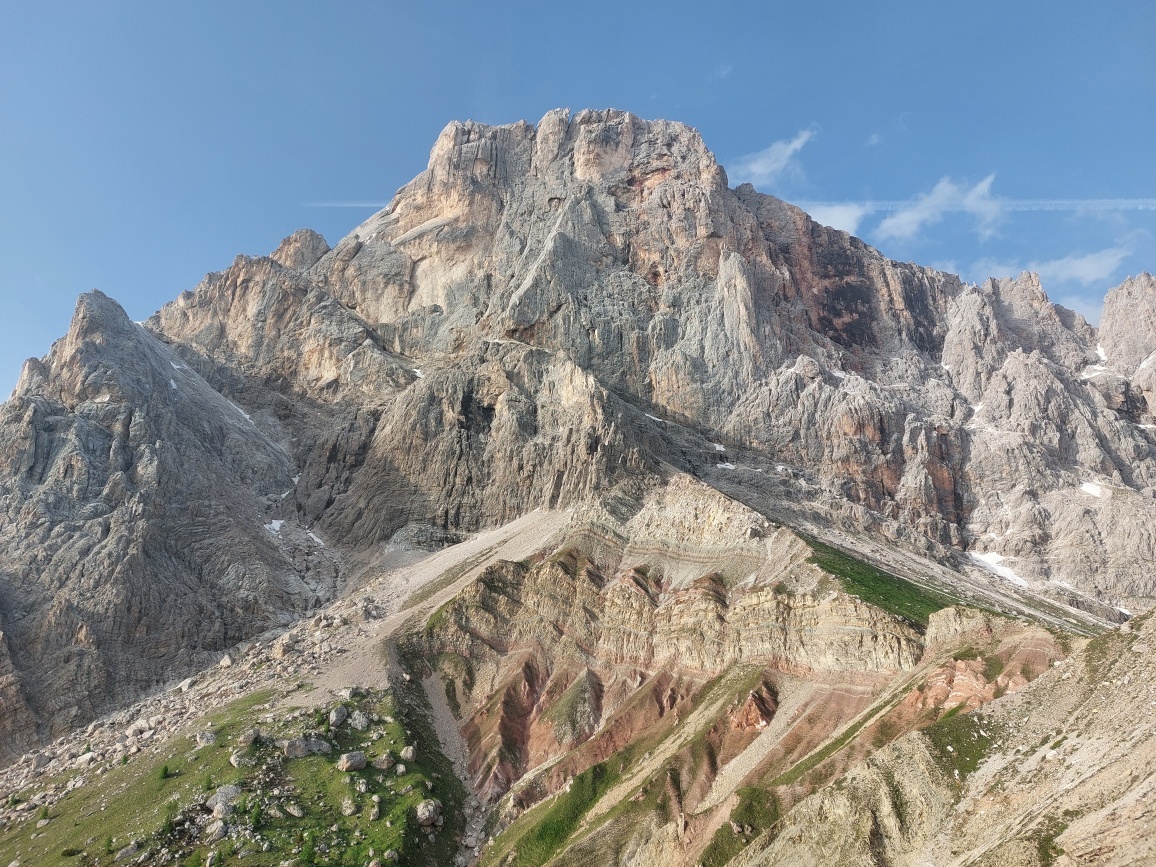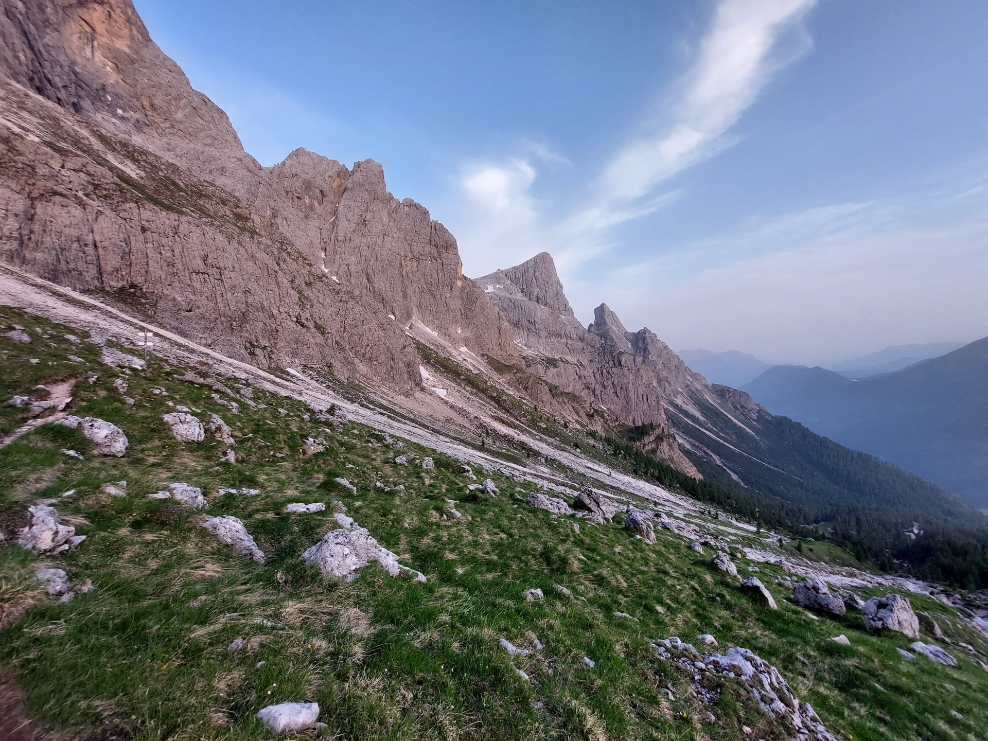 The trek starts at Malga Fosse (1936 m), just below Passo Rolle; from here, take path 712, also called Sentiero dei Finanzieri; after a short initial climb, the route crosses the Rio Marmol and Crode Rosse area; in this section, the path is characterized by a series of short but challenging descents followed by ascents until reaching the Pala Monda meadows, where you enjoy an unmatched panorama of the Cimon della Pala, dominating the view. The route then continues on section 712A until it meets path 701 which rises from Baita Colverde. The last stretch is an ascent passing under the Rosetta cable car pylon until arriving at Rifugio Rosetta (2581 m), in the heart of the Pale Plateau.