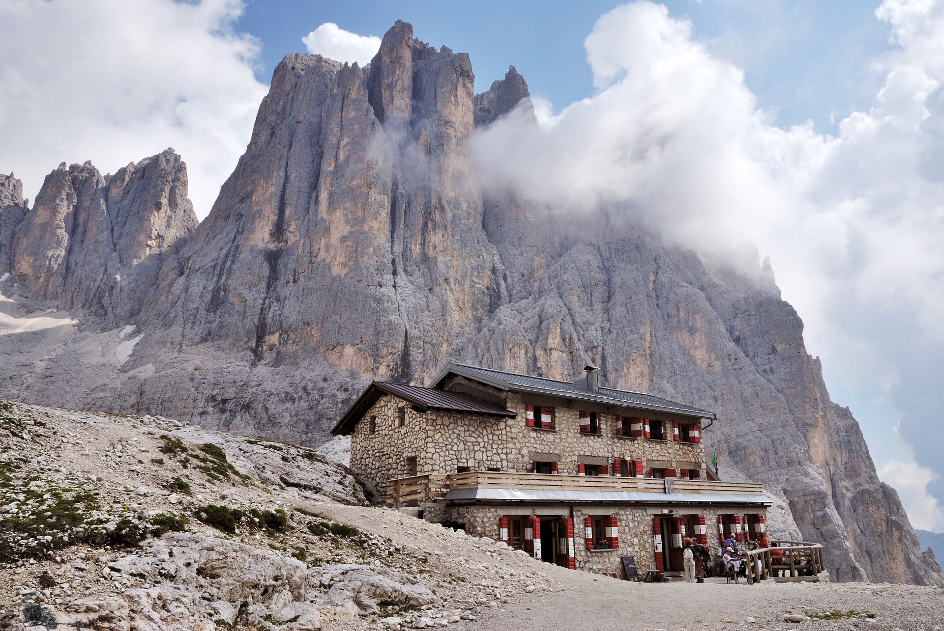 The trekking starts from Rifugio Pradidali (2278 m) from which Passo di Ball is reached in about 20 minutes (trail 715, part of the Alta Via number 2); upon reaching Passo di Ball, you proceed for several hundred meters on a rocky ledge equipped with a safety metal cable; although not classified as a via ferrata, it is recommended to carry the kit with harness and carabiners; after the equipped section, continue along trail 715 until reaching the area Col dei Bechi; here, after crossing trail 702 of Barone Von Lesser, you begin to gradually descend on a panoramic and never too steep path where you can enjoy views of the Pale di San Martino group (in particular Cima Val di Roda, Cima Immink and the Pala di San Martino); the descent continues until crossing the forest road of Val di Roda; at this point follow the signs for the trail that leads to Prati Col and then with an additional 20 minutes walk to the town center of San Martino di Castrozza.