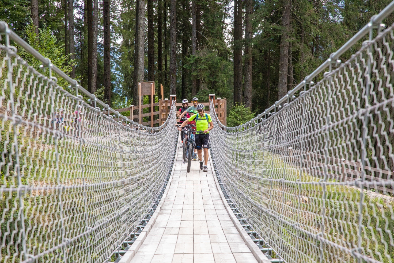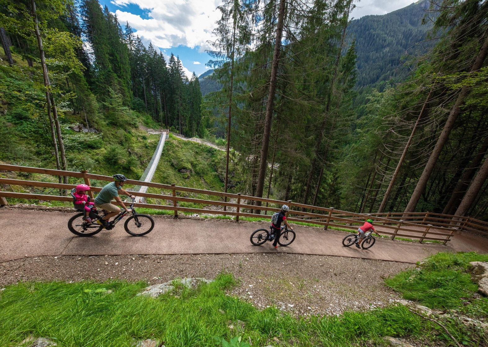 The cycle-pedestrian path allows reaching San Martino di Castrozza from the village of Imer, crossing a spectacular steel cable bridge 58 meters long and with a maximum height of 23 meters above the stream below.