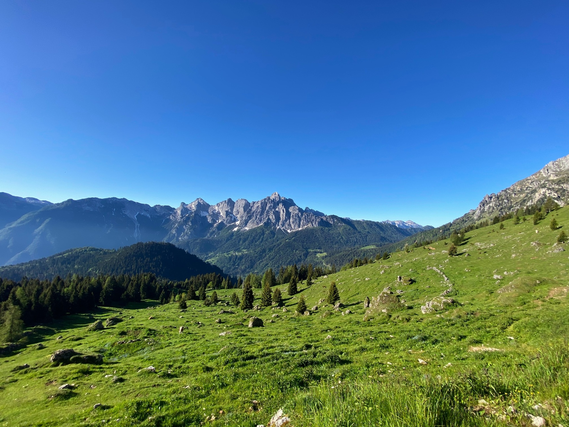 This trail takes place entirely in the wild and rather unpopular environment of the sunny south-eastern slopes of the eastern range of the Pala Group (which goes from the summit of Monte Feltraio to the one of Monte Agnèr). The itinerary, which in two successive moments shortly raises above 2,000 meters of altitude, is characterized by the particular atmosphere that this corner of Pale di San Martino offers, with sweeping views of bleak grassy slopes and Dolomite peaks.