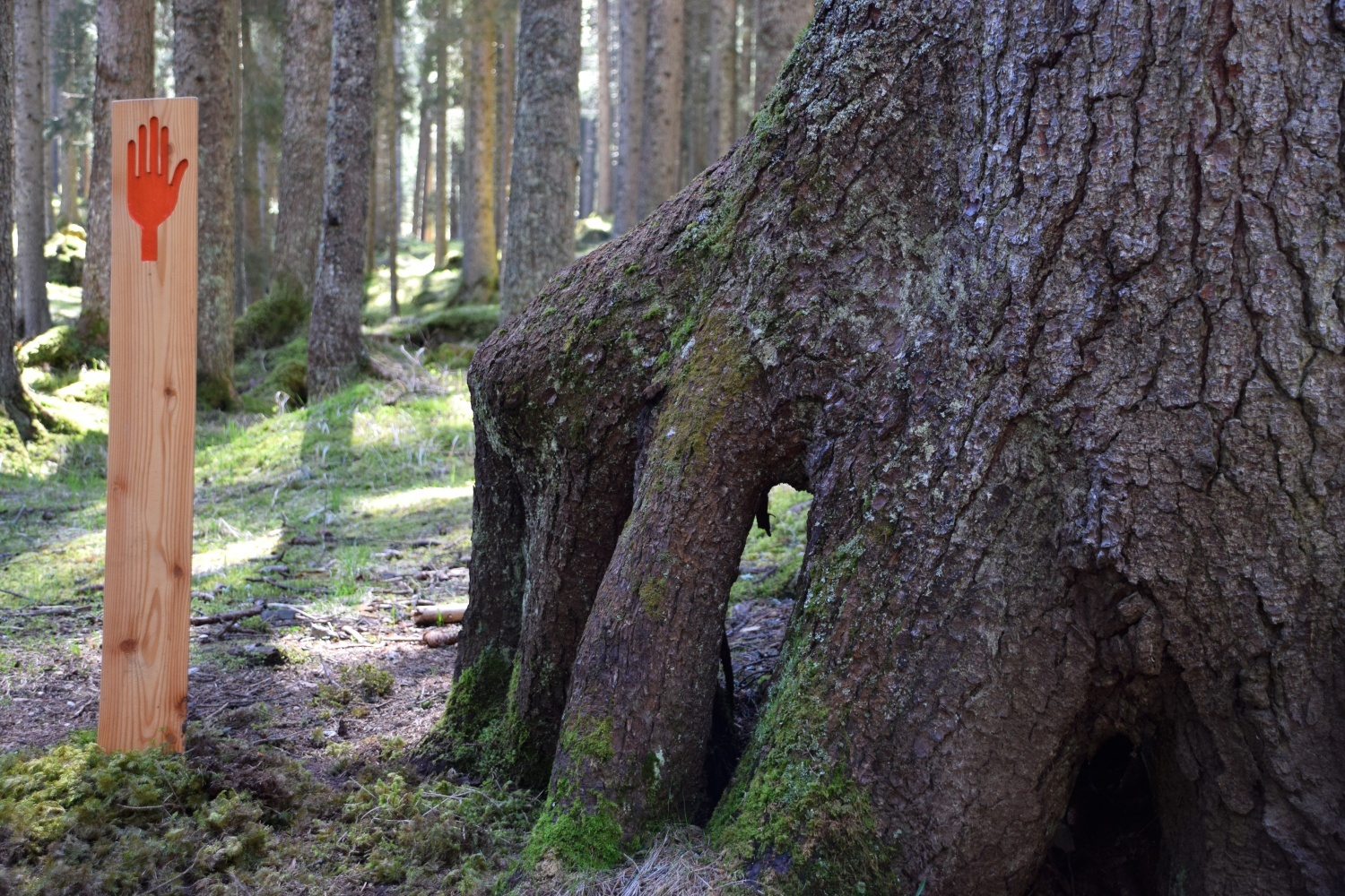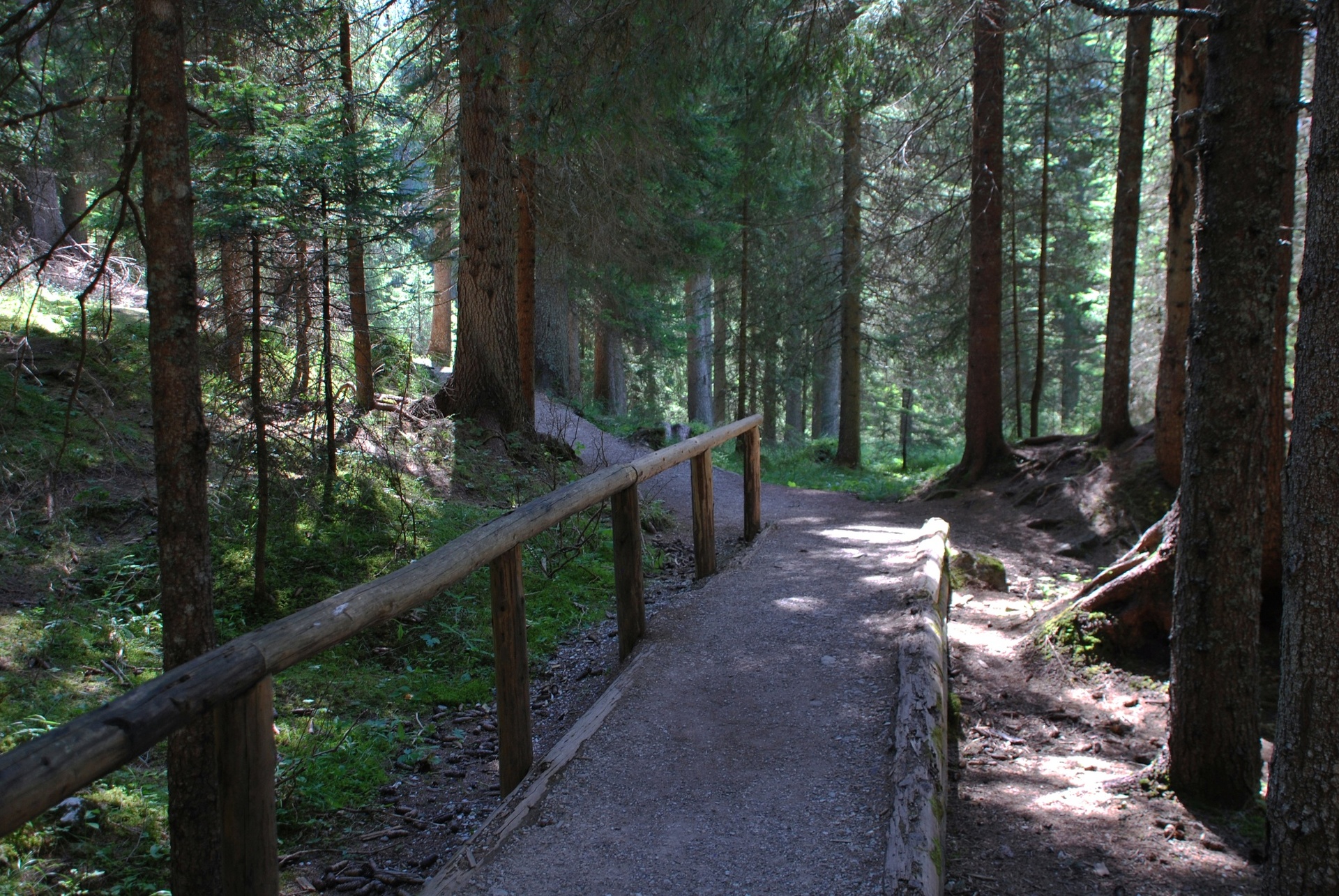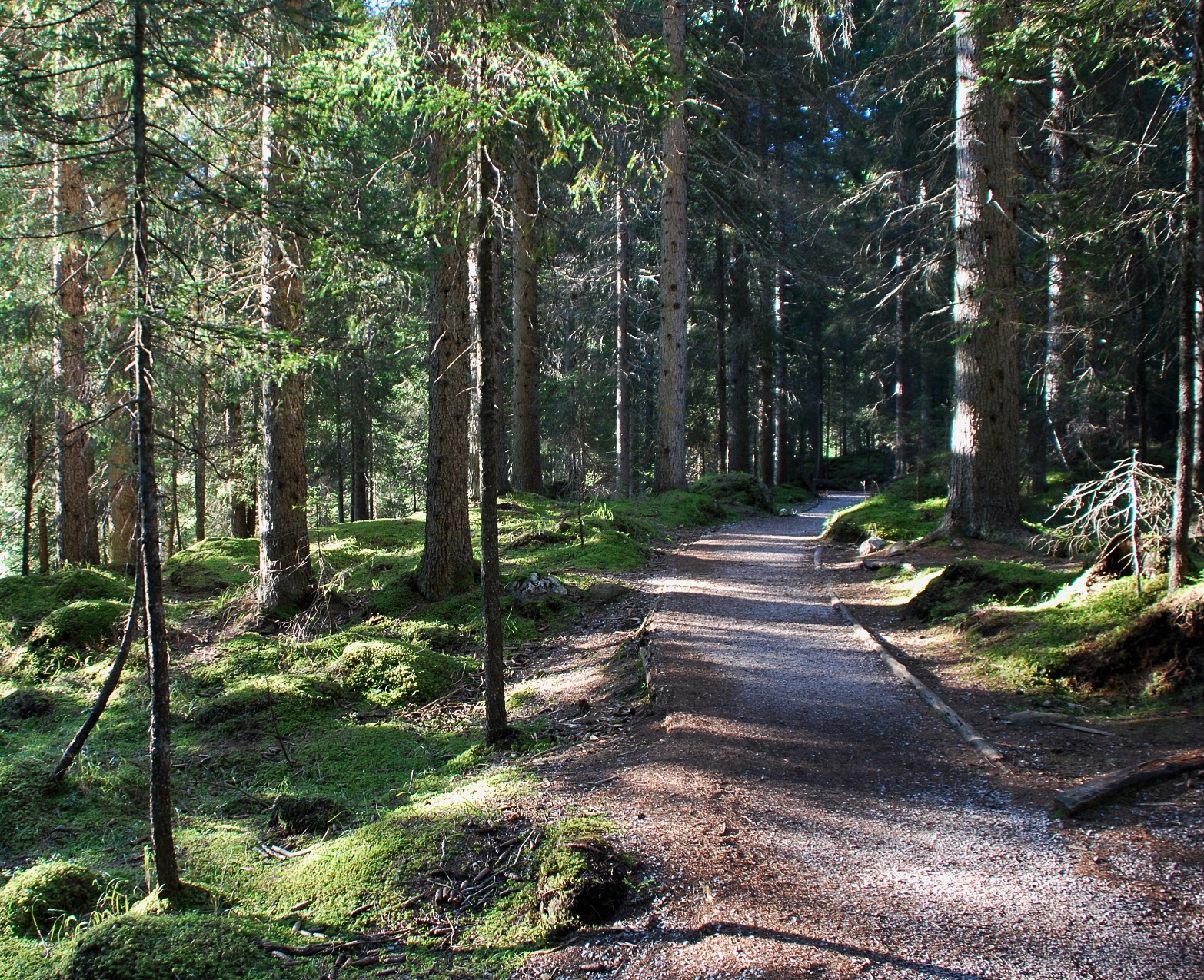 The Sentiero Marciò is a naturalistic loop route with observation points and information panels within the Paneveggio Pale di San Martino Nature Park.