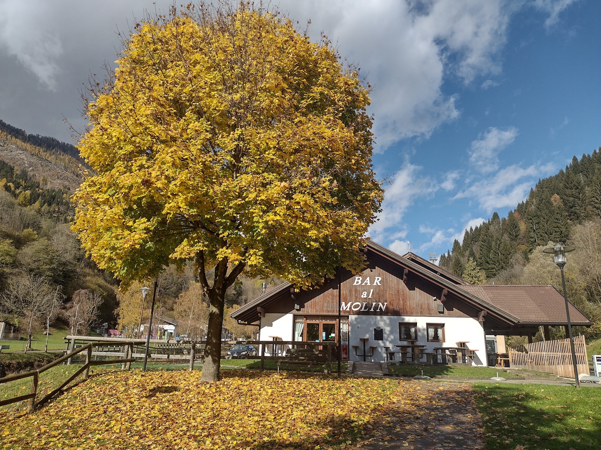 Bicigrill "Al Molin" in the municipality of Primiero San Martino, at the entrance to the new section of the pedestrian cycle that leads to San Martino di Castrozza and then climbs up to Rolle Pass.