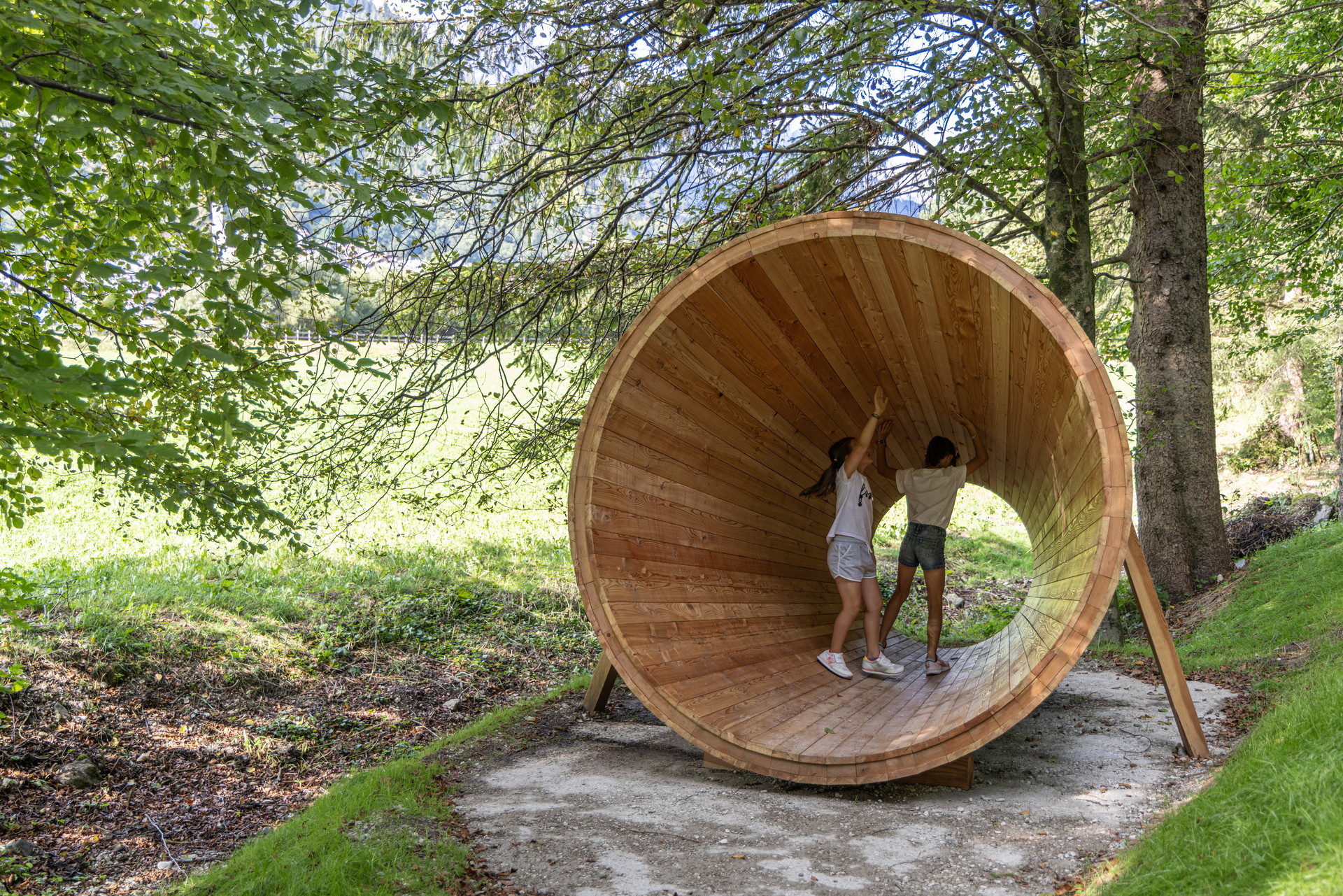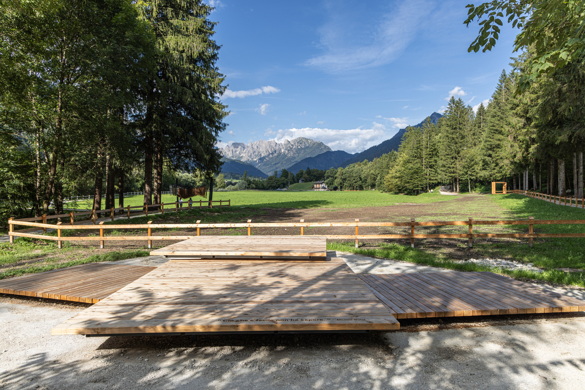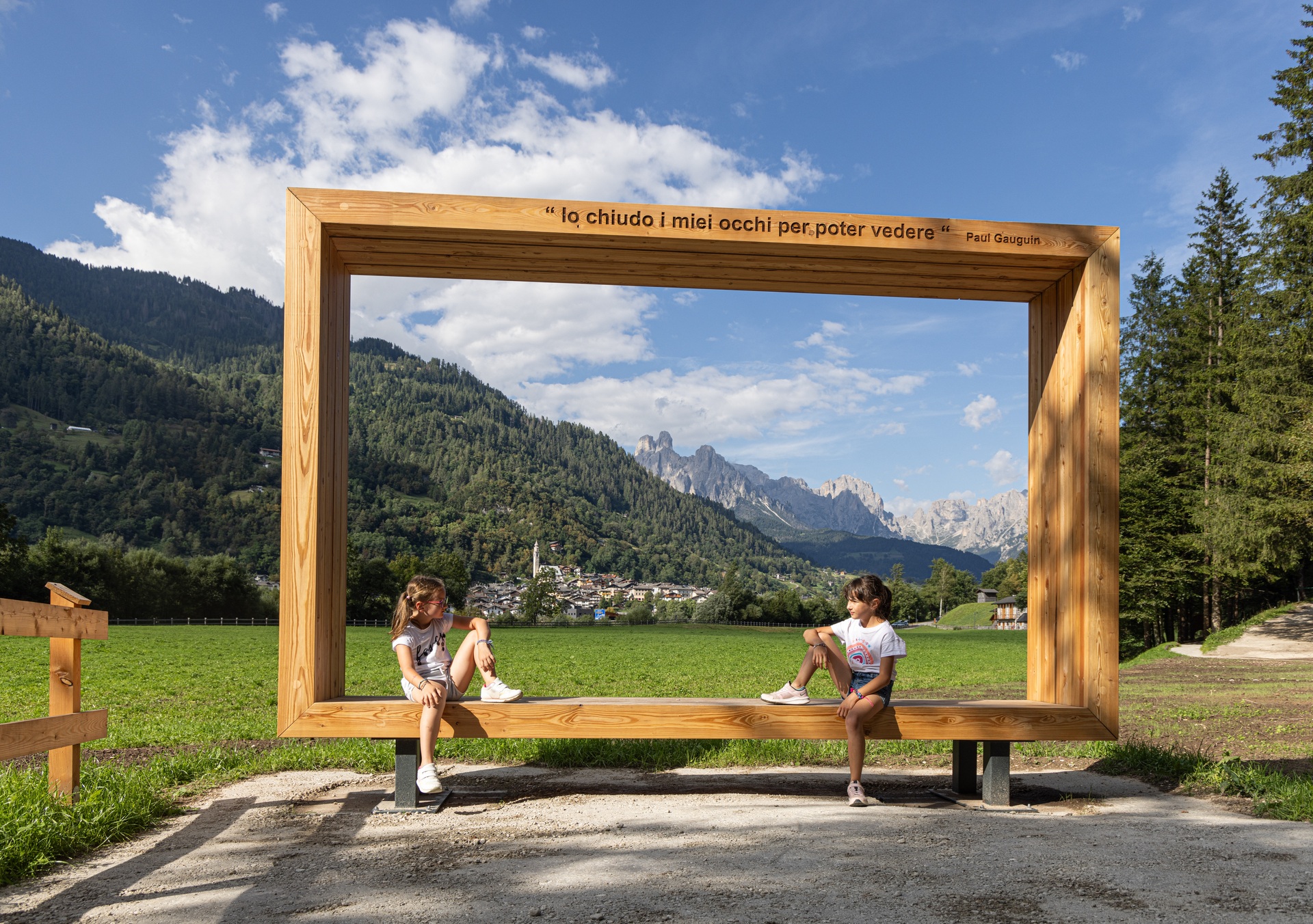 The landscape architecture project "Immergiti", developed by the landscape architect Eva Maria Schgaguler, includes seven stations and artistic/functional installations, which are inspired by a concept of land art on the basis of other more famous examples such as Arte Sella and the Sentiero delle Muse Fedaie in Val Canali.