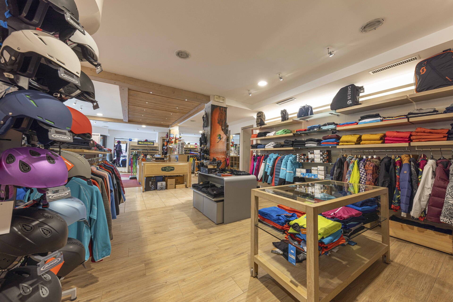 The San Martino Sport store has been open since 2003 , the goal has always been to offer both winter and summer tourists quality sports items to best meet the needs of outdoor and winter sports lovers. We specialise in footwear ranging from simple walks in the high mountains to running in the mountains. For the summer we have everything you need for an outdoor experience. From backpacks of all sizes ,water bottles camping accessories and of course clothing for every need. In winter we dress from head to foot every skier or snowborder, in addition to snow suits we have a wide assortment of helmets ,masks and various accessories for men, women and children. Great attention is also paid to all other winter sports such as ski mountaineering, cross-country skiing and snowshoeing. In recent years we are increasingly developing sportswear for daily and city use. We offer a rental service for trekking strollers and backpacks for children. Opening period and opening times: we are open from early June to late September every day at 9:00 a.m. -12:30 /15:00-19:30 in July and August also in the evening21:00- 22:30 the winter season with the same times we are open from early December to first May October/November/ May closed but available