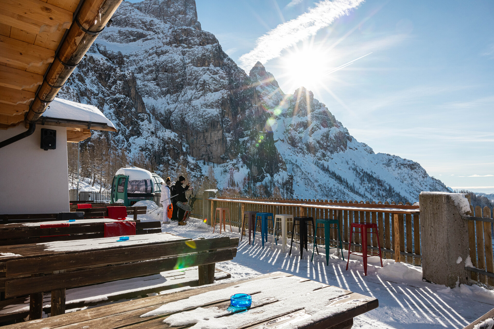 Goditi una pausa coccolato da una vista spettacolare, un gustoso spuntino o con dei piatti prelibati, preparati con cura dai nostri chef, per una sosta tra una discesa e l’altra, per un pranzo in compagnia o anche una cena romantica. L’ampia sala interna è interamente arredata secondo il classico stile di montagna, con legno di vari tipi ed oggetti antichi, che contribuiscono a riscaldare l’atmosfera e ad affermare le tradizioni locali, mentre la terrazza esterna si affaccia sul paese di San Martino di Castrozza e le magnifiche Dolomiti.
