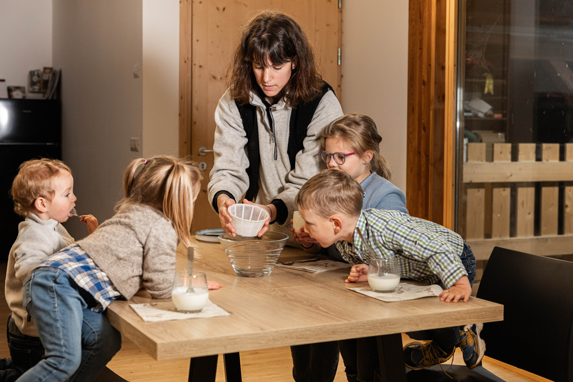 Guidati da Giulia, impareranno a conoscere il mondo degli animali, prepareranno burro e tosela, scopriranno la vita delle api, della malga e dei boschi. Il tutto in una fattoria didattica moderna in legno, dove agricoltura e didattica si incontrano nel rispetto della natura.