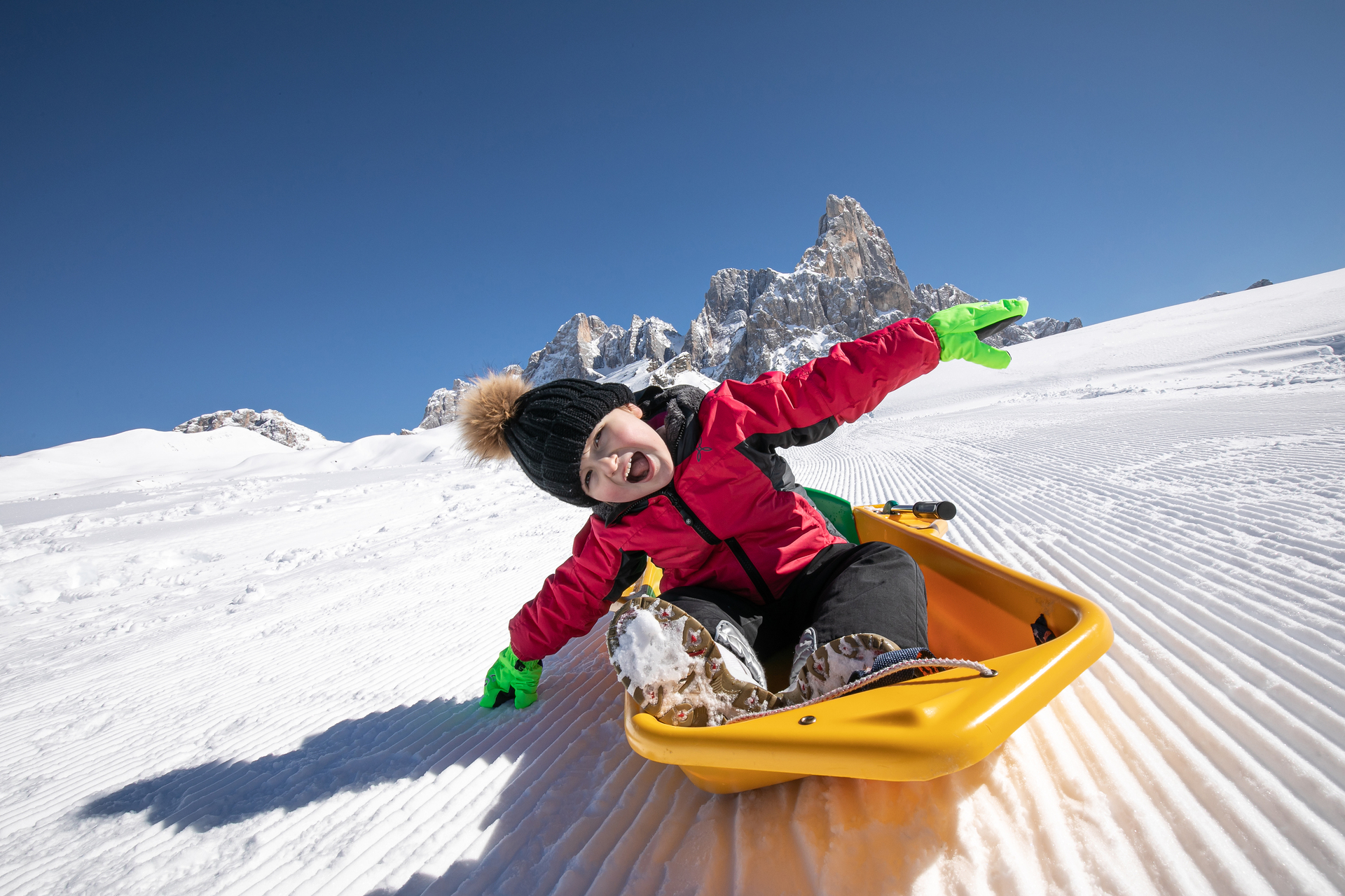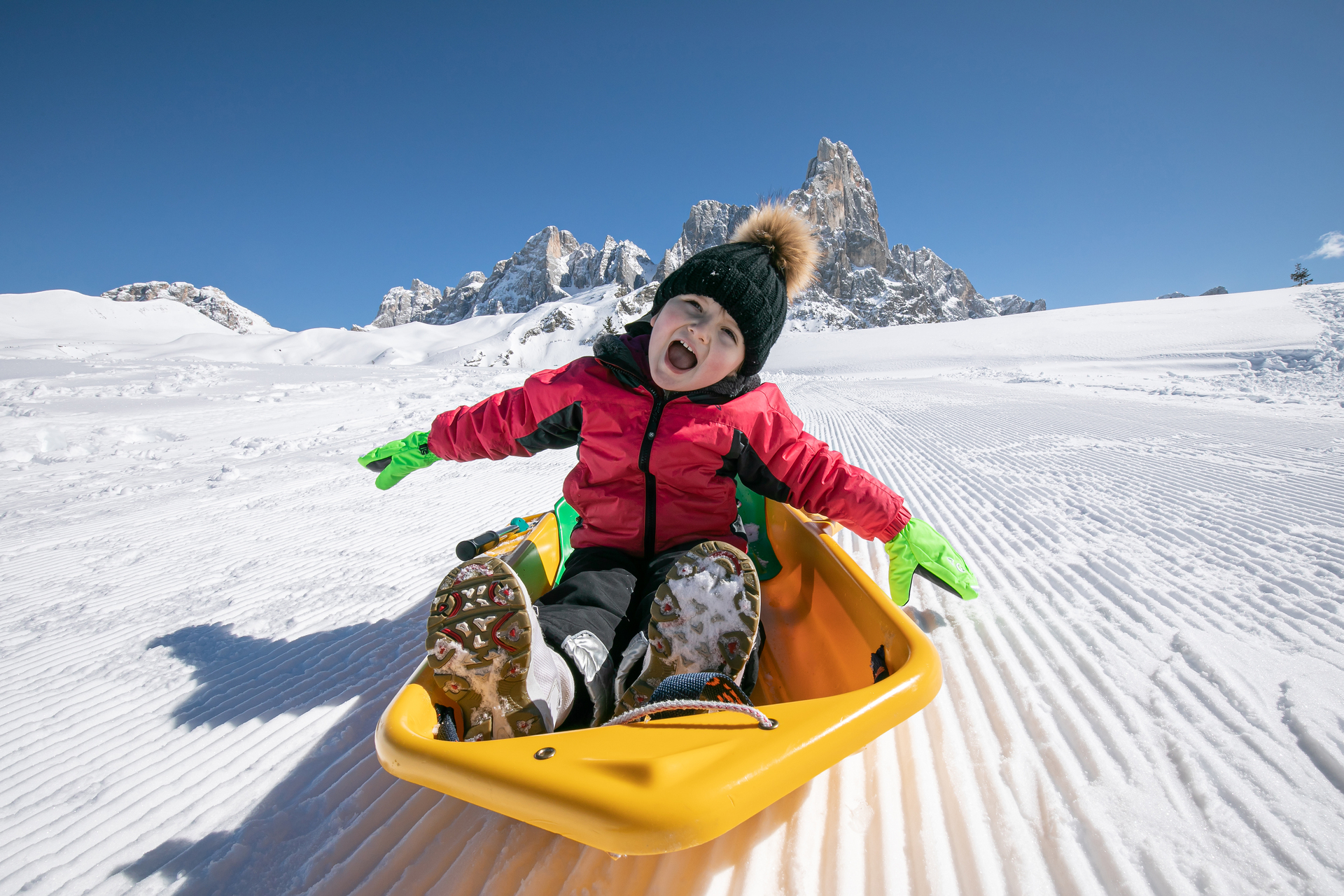 Divertirsi sulla neve è l’esigenza primaria di ogni bambino e non c’è bimbo che non voglia vivere l’esperienza di slittare, fare un pupazzo, prendere un bob e scivolare in pista! Al Passo Rolle le famiglie possono trovare con facilità la pista per slitte, accessibile con la seggiovia Cimon. Un divertimento lungo più di 400 m al cospetto delle Pale di San Martino! Per chi non disponesse di bob o slittini si possono comodamente noleggiare in loco. Vi ricordiamo anche che il Passo Rolle può essere raggiunto velocemente con lo skibus da San Martino di Castrozza, senza dover quindi per forza spostare la propria auto.