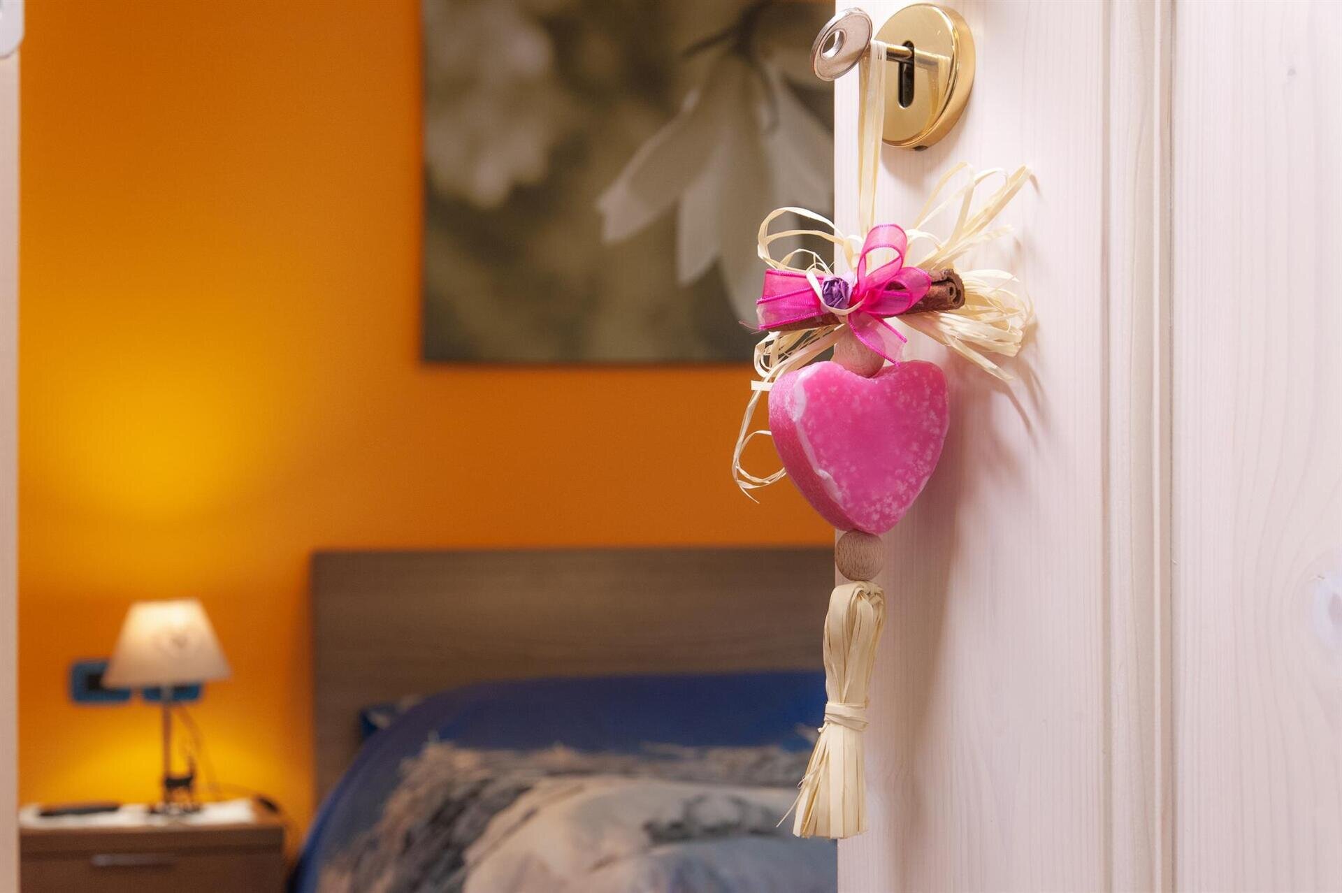 La zona notte comprende una stanza da letto matrimoniale con grande armadio ed una stanza con letto a castello; entrambe sono corredate di piumini e cuscini. L’ampio bagno finestrato, con raffinata e comoda doccia, è provvisto di lavatrice e phon. Completa l’offerta la dotazione di biancheria (asciugamani bidet viso e doccia, copri piumini), l’asse e ferro da stiro.