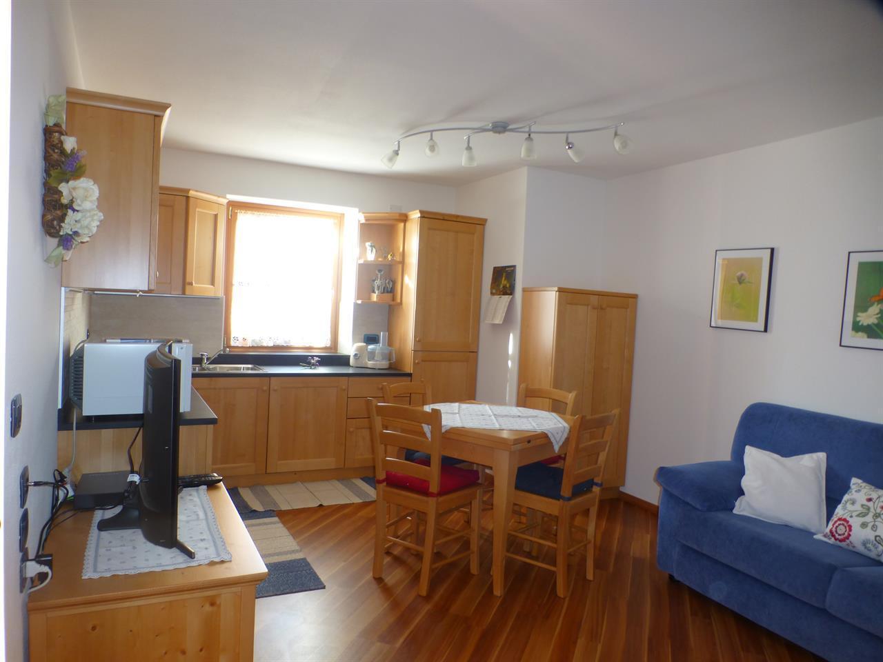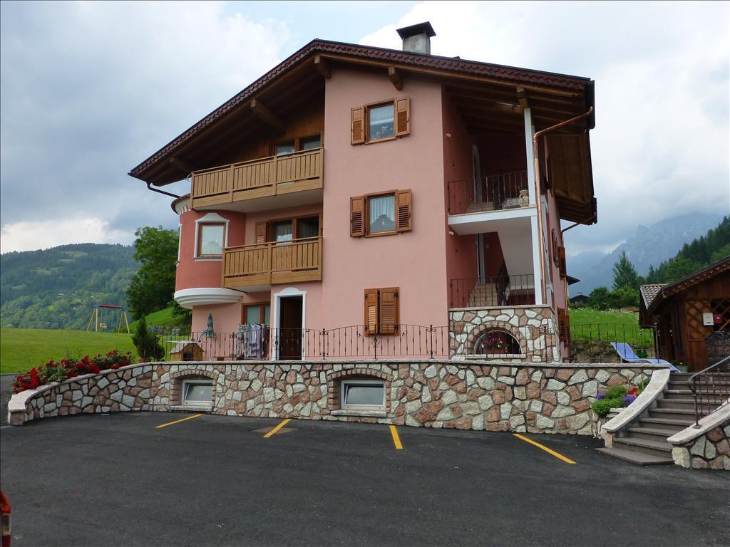 Luminoso appartamento a piano terra, dotato di tutti i confort moderni, immerso nel verde con vista mozzafiato delle famose Pale di San Martino, è l’ideale per una vacanza in famiglia.