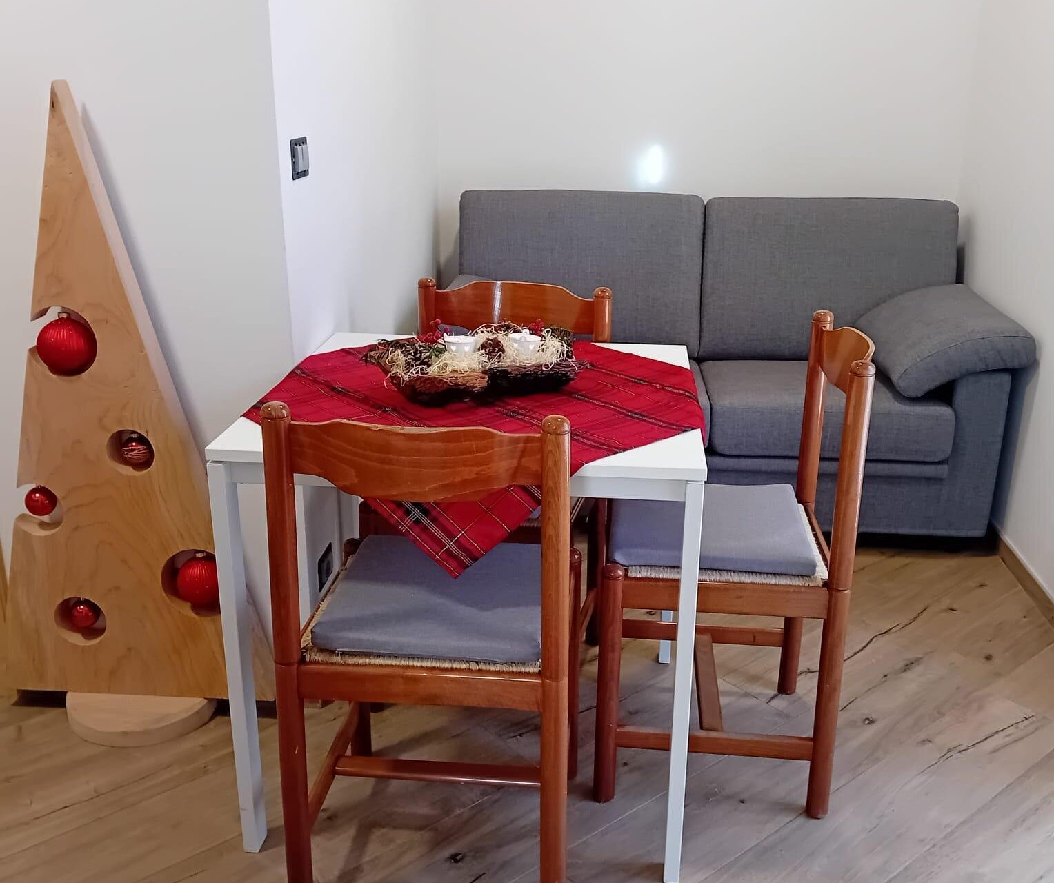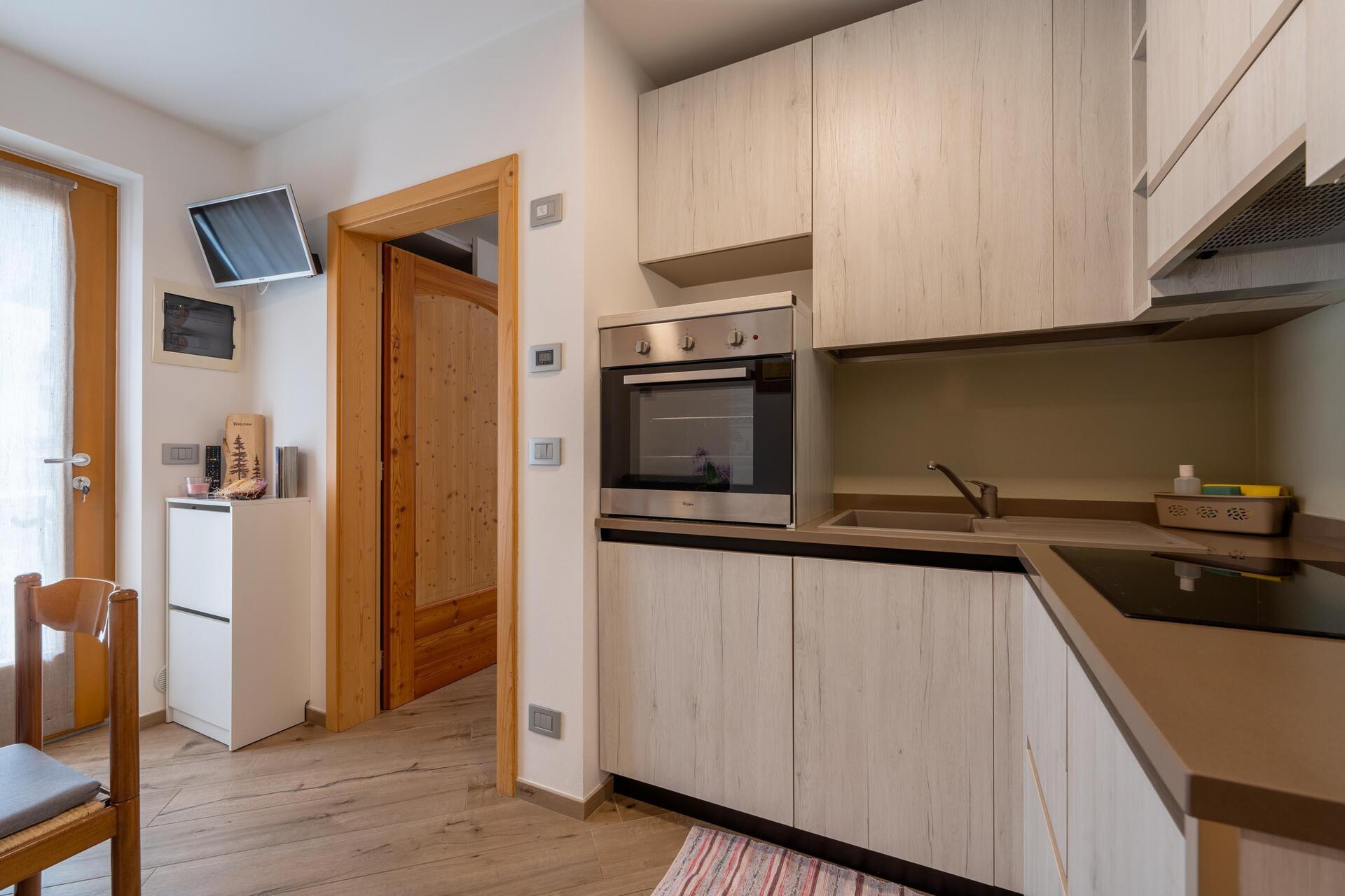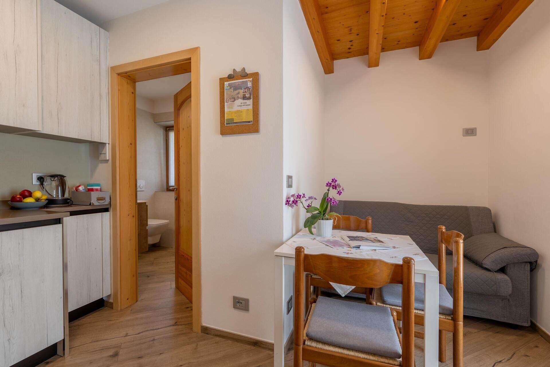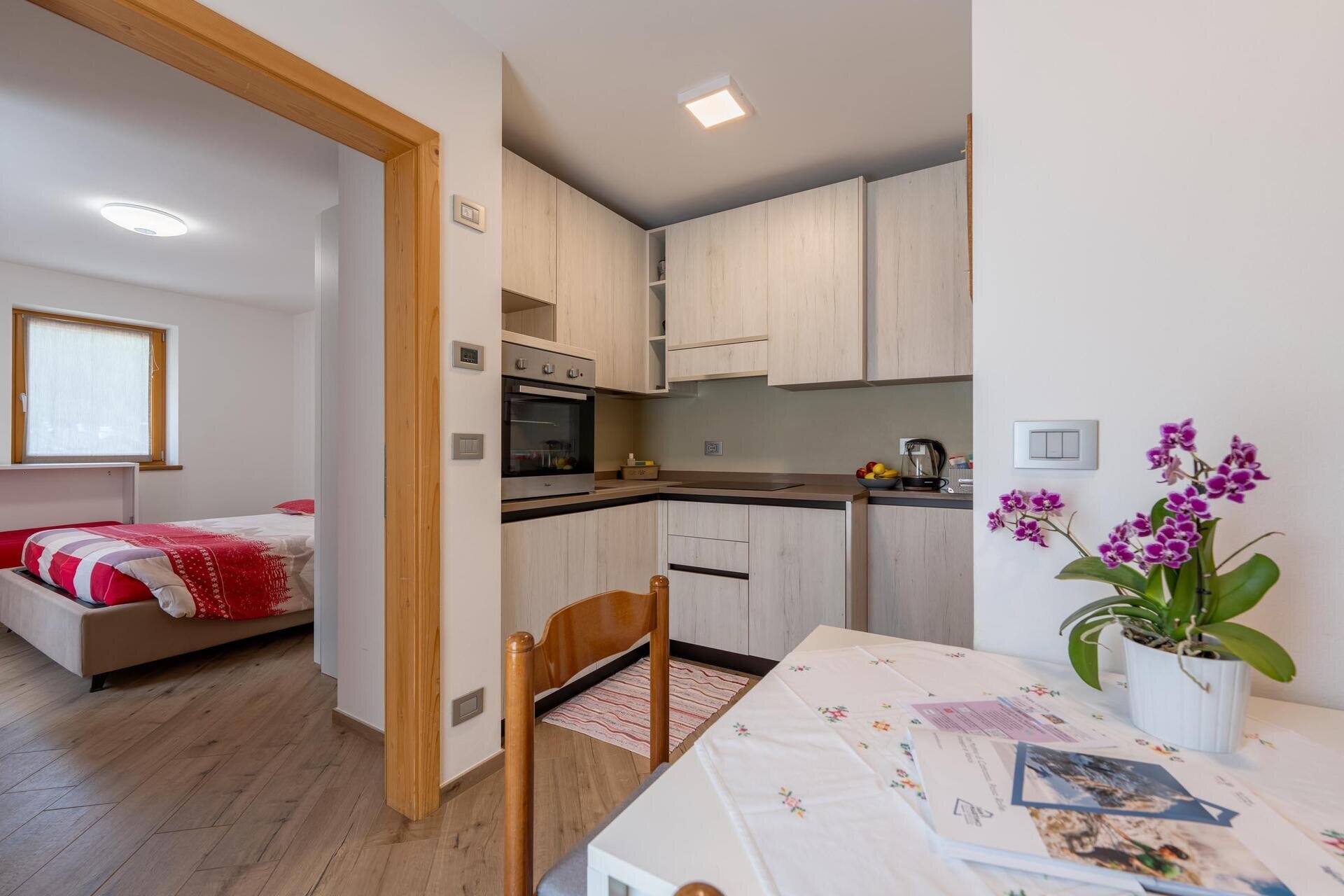 L'appartamento è in una zona residenziale tranquilla del paese di Mezzano, uno dei borghi più belli d'Italia, vicino alla ciclabile, al parco giochi e centro sportivo. L'appartamento è nuovo e dispone di una camera matrimoniale con eventuale terzo letto, cucina con tavolo, spazio soggiorno e bagno con doccia. Si trova al piano terra con uno spazio esterno, tavolo e sedie, l'ambiente è curato con tutti gli elettrodomestici (forno, piastra cottura, frigo, lavastoviglie, lavatrice, phon e aspirapolvere ecc). Si dispone inoltre di parcheggio privato, rete wi-fi gratuita e deposito attezzatura (sci-bici), gli animali sono ammessi. Incluso nell'offerta dell'alloggio biancheria da letto e asciugamani con un kit cucina. Si offrono consigli sulla programmazione delle vacanze, con diverse cartine e opuscoli. Nel paese di Mezzano sono presenti molti servizi: supermercato, bar, pizzerie, bancomat, farmacia, giornalaio, fermata skibus, biblioteca.