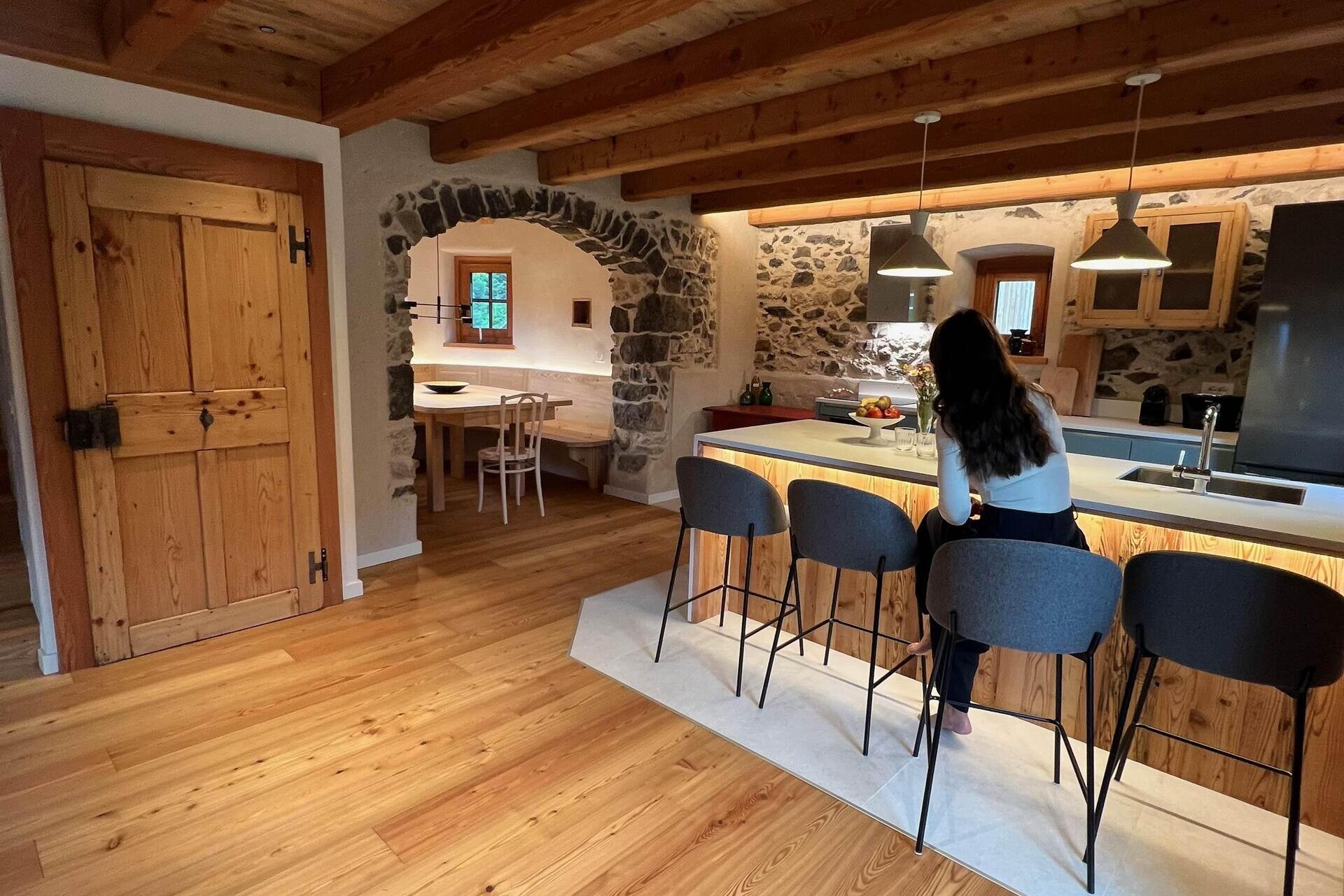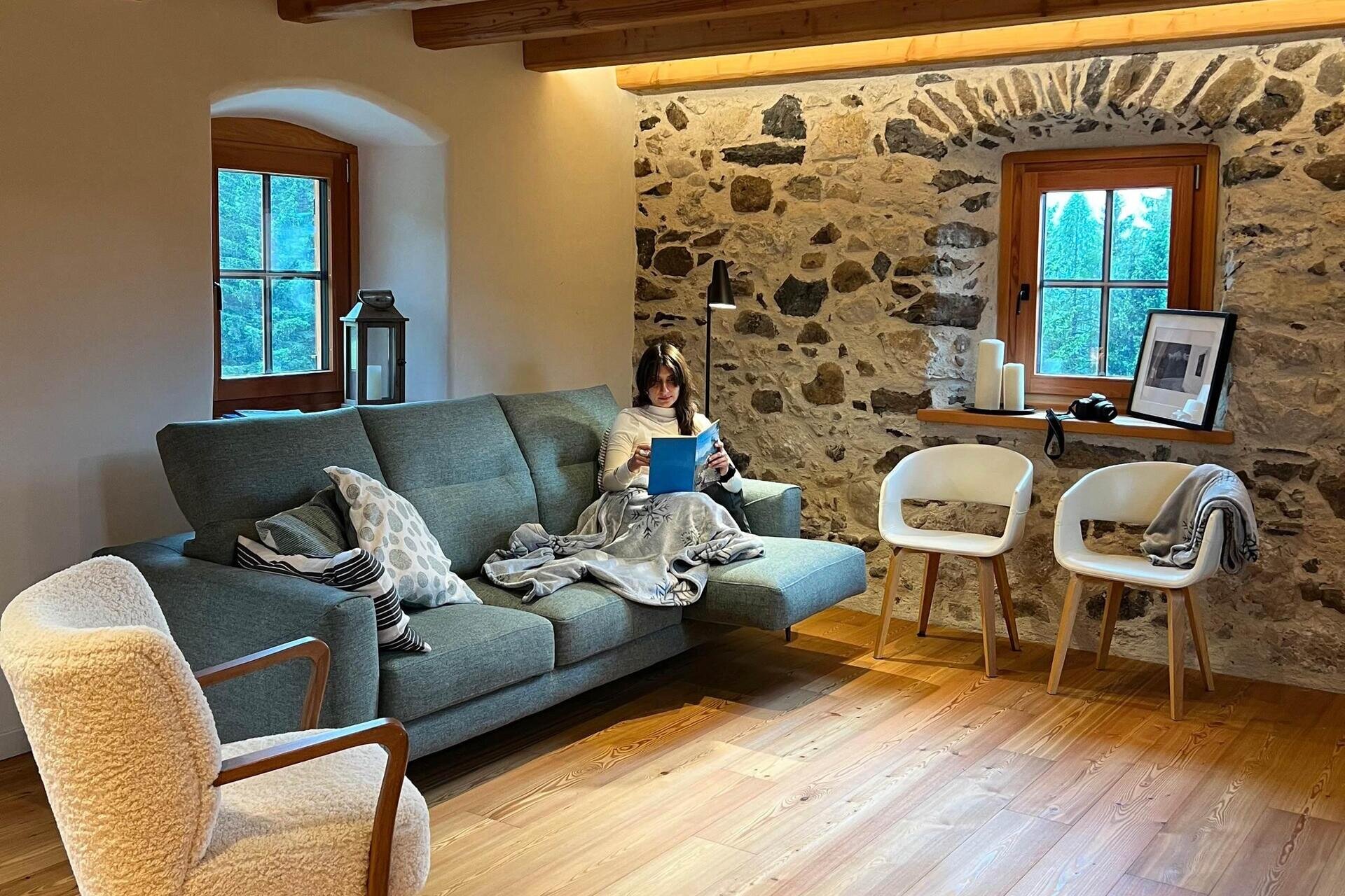 Finita di ristrutturare nel 2025, la baita conserva intatto il fascino autentico delle tradizionali dimore del Primiero: materiali naturali, legno e pietra originali si intrecciano con comfort moderni per garantire un soggiorno confortevole e avvolgente, in perfetta armonia con l’ambiente circostante.