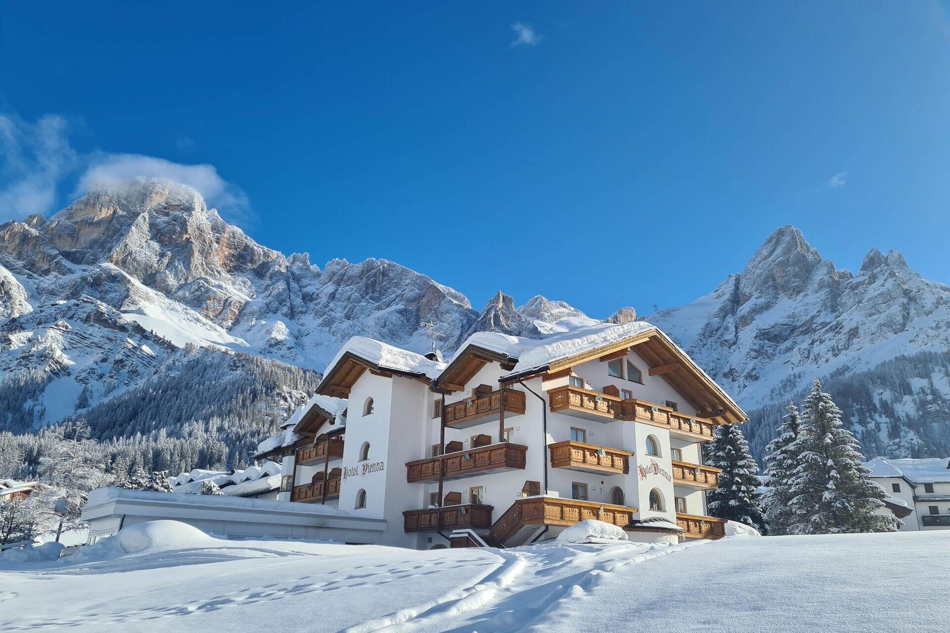 Hotel Vienna Vacanza a San Martino di Castrozza Una vacanza con la vostra famiglia, in Trentino. Hotel Vienna è un wellness hotel trentino che vi accoglie in una struttura calda, immersa nel maestoso scenario naturale delle Dolomiti orientali. È la vacanza benessere per riacquistare energia, perché la montagna del Trentino ha questa proprietà benefica tutto l’anno! Scoprite le offerte vacanze all’interno del sito! Un Trentino che stupisce sempre! CAMERE Tutte dotate di pacchetto Sky Gold! Perfette per trascorrere una vacanza con la vostra famiglia. Siamo in un Trentino all’insegna della comodità e del pregio. Ogni stanza prende il nome dai compositori e dalle composizioni più famose della musica classica austriaca. La tipologia di camere dell’Hotel Vienna comprende le Suite Beethoven, le triple Mozart, le matrimoniali Strauss e le singole Schubert. Tutte raffinatamente arredate secondo un gusto genuinamente austriaco; dotate di tutti i comfort, apertura con tessera magnetica, tv e decoder Sky Gold, cassaforte, frigobar, bagno con doccia o vasca, specchio beauty, phon; linea cortesia e comodi dispenser doccia e shampoo. WELLNESS L’Hotel Vienna è un vero e proprio wellness hotel a San Martino di Castrozza. Gli ospiti, infatti, potranno rilassarsi presso la nostra Beauty Spa o all’interno del Giardino delle saune e trascorrere dei momenti di assoluto benessere grazie alla sauna, al bagno turco, agli idromassaggi, alla cromotherapy, alla terrazza relax; potrete rivalutare la vostra bellezza con le cabine estetiche e depurarvi servendovi ai nostri ricchi buffet di tisane. Inoltre, l’Hotel mette a disposizione nuove docce solari uva e una cabina podologica dove potrete farvi coccolare dalle mani della nostra estetista. Lasciatevi conquistare dal benessere!
