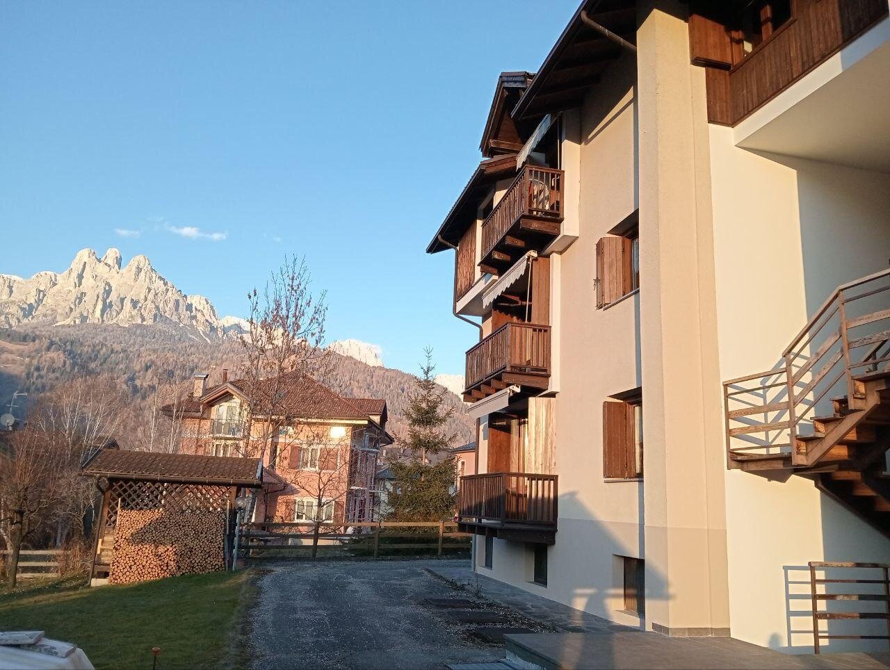 Appartamento con splendida vista su tutta la valle del Primiero e montagne circostanti, in posizione centrale ma tranquilla a 5 minuti a piedi dal centro di Fiera, completo di spazio verde attrezzato, posto auto scoperto e deposito sci/biciclette privati. Fermata Autobus e Coop di Transacqua a 100 metri.