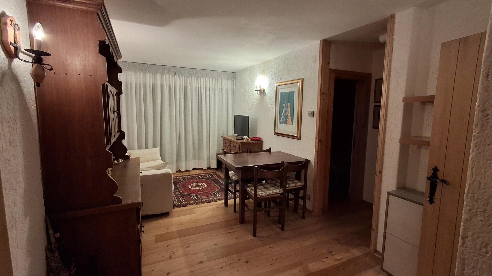 Appartamento in zona centrale a San Martino di Castrozza nelle vicinanze della zona pedonale, di fronte alla fermata dello skibus. Composto da soggiorno, cucinotto, una camera matrimoniale, una camera con letto a castello e un divano letto in soggiorno.