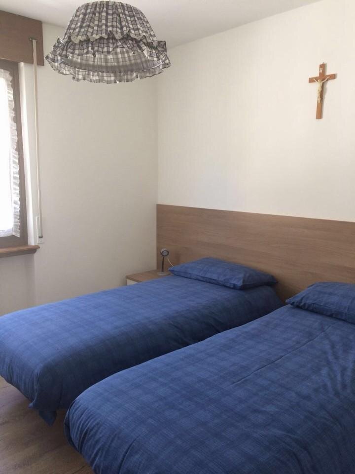 L'appartamento di circa 100 mq è posizionato a 150 metri dalla partenza degli impianti Tognola, dispone di ampio giardino, parcheggio privato e ottima vista panoramica delle Pale di san Martino. Appena ristrutturato, con pavimenti, porte ed arredi nuovi. E' composto da 3 stanze da letto, di cui 2 matrimoniali, soggiorno con TV, cucina con lavastoviglie e doppi servizi con doccia e lavatrice.